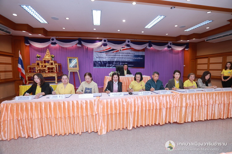 วันที่ 7 มกราคม 2568 เวลา 10.00 น. ณ ห้องประชุมประทุมเทพภักดี 1 เทศบาลเมืองวารินชำราบ ได้จัดโครงการประชุมมอบนโยบายการปฏิบัติราชการ พิธีลงนามในบันทึกข้อตกลงการปฏิบัติราชการ และกิจกรรมประกาศเจตนารมณ์การต่อต้านการทุจริตและประพฤติมิชอบ ประจำปีงบประมาณ 2568 โดยมีนายจีระชัย ไกรกังวาร นายกเทศมนตรี เป็นประธานในพิธี สำหรับการประชุมในครั้งนี้ นายจีระชัย ไกรกังวาร นายกเทศมนตรี ได้มอบนโยบายการปฏิบัติราชการ แก่หัวหน้าส่วนการงาน, พนักงานเทศบาล พร้อมด้วยคณะผู้บริหารสถานศึกษา เพื่อสร้างความรู้ความเข้าใจในนโยบายและหลักการดำเนินงานของเทศบาล อีกทั้งยังเป็นการปลูกฝังสร้างจิตสำนึกแก่พนักงานให้มีความรับผิดชอบในหน้าที่ ตามที่ได้รับมอบหมาย รวมถึงยังเป็นการส่งเสริมและสร้างขวัญกำลังใจที่ดีในการทำงาน พร้อมกันนี้นายจีระชัย ไกรกังวาร นายกเทศมนตรี ร่วมพิธีลงนามในบันทึกข้อตกลงการปฏิบัติราชการ และประกาศเจตนารมณ์นโยบายไม่รับของขวัญและของกำนัลทุกชนิดจากการปฏิบัติหน้าที่ (No Gift Policy) และประกาศเจตจำนงสุจริตในการบริหารงาน ตามนโยบายคุณธรรมและความโปร่งใส เพื่อเป็นมาตรฐานแนวทางปฏิบัติ และค่านิยมสำหรับข้าราชการและบุคลากรขององค์กร ในการดำเนินงานตามภารกิจด้วยความโปร่งใส ซื่อสัตย์สุจริต มีคุณธรรม ปราศจากการทุจริต รวมทั้งเน้นยำให้บุคลากรในสังกัดเทศบาลเมืองวาริน ถือปฏิบัติตามประกาศเจตนารมณ์นโยบายไม่รับของขวัญและของกำนัลทุกชนิดจากการปฏิบัติหน้าที่ (No Gift Policy) และการดำเนินการตามประมวลจริยธรรม อย่างเคร่งครัด และให้นำหลักเกณฑ์ตามประมวลจริยธรรมที่เกี่ยวข้องไปใช้ในการปฏิบัติตน และรักษาคุณงามความดีที่เจ้าหน้าที่ของรัฐต้องยึดถือปฏิบัติ รวมถึงแนวทางการปฏิบัติตนทางจริยธรรม (Do’s & Don’ts) ข้อควรทำ ข้อไม่ควรทำ ไปใช้ในการปฏิบัติงาน