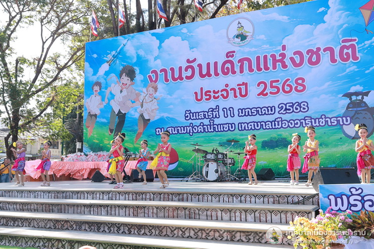 วันที่ 11 มกราคม 2568 เวลา 09.00 น. ที่สนามทุ่งคำน้ำแซบ เทศบาลเมืองวารินชำราบ ได้จัดกิจกรรมงานวันเด็กแห่งชาติ ประจำปี 2568 "ทุกโอกาส คือ การเรียนรู้ พร้อมปรับตัวสู่อนาคตที่เลือกเอง" เพื่อให้เด็กและเยาวชนได้รับความรู้ เสริมสร้างทักษะ และกระตุ้นความคิดสร้างสรรค์ผ่านกิจกรรมที่สนุกสนานซึ่งในปีนี้มีกิจกรรมให้เด็กและเยาวชนได้ร่วมสนุกสนานมากมายทั้งซุ้มกิจกรรมเล่นเกมส์รับของรางวัลจากกองงานต่างๆ ของเทศบาลโรงเรียนในสังกัดเทศบาลทั้ง 3 แห่งและหน่วยงานต่างๆที่มาร่วมมอบความสุขและความสนุกให้แก่เด็กๆได้แก่ศูนย์การศึกษานอกโรงเรียนวารินชำราบ รวมทั้งยังได้มีการจัดกิจกรรมแข่งขันทักษะในด้านต่างๆ นอกจากนี้ยังได้มีพิธีมอบเกียรติบัตร "เด็กดีศรีวารินฯ"ให้แก่เยาวชนที่มีความประพฤติดีจากโรงเรียนในเขตอำเภอวารินชำราบและการมอบใบประกาศแก่นักเรียนที่ได้รับรางวัลจากการแข่งขันทั้งทางวิชาการและการกีฬาในด้านโดยนายจีระชัย ไกรกังวาร นายกเทศมนตรี ประธานในพิธีพร้อมด้วยการแสดงของเด็กนักเรียนจากโรงเรียนในสังกัดเทศบาลเมืองวารินชำราบ