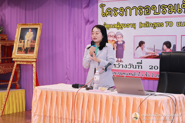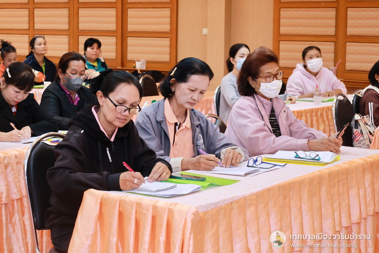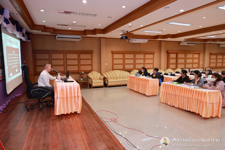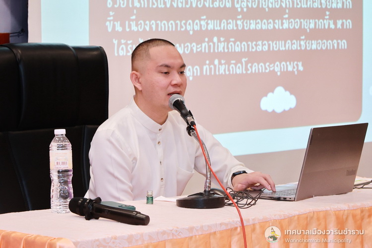 วันที่ 23 มกราคม 2568 เวลา 09.00 น. ณ ห้องประชุมประทุมเทพภักดี 1 ศูนย์บริการสาธารณสุขแห่งที่ 2 เทศบาลเมืองวารินชำราบ ได้จัดโครงการอบรมเชิงปฏิบัติการผู้ดูแลผู้สูงอายุ (หลักสูตร 70 ชม.) ประจำปี 2568 วันที่ 4 ระหว่างวันที่ 20-24 มกราคม 2568 เพื่ออบรมให้ความรู้สำหรับผู้ดูแลผู้พิการและผู้ช่วยเหลือดูแลผู้ที่มีภาวะพึ่งพิง (CG) ให้มีความรู้ที่ถูกต้องเหมาะสม สำหรับการอบรมในครั้งนี้เป็นการให้ความรู้ในเรื่องอาหารและโภชนาการบำบัดโรคสำหรับผู้สูงอายุ โดย นายณัฐภรณ์ เมืองจันทร์ ตำแหน่ง นักโภชนาการ มาเป็นวิทยากรบรรยายให้ความรู้ในครั้งนี้