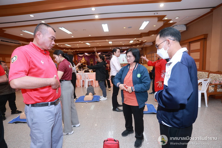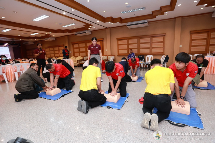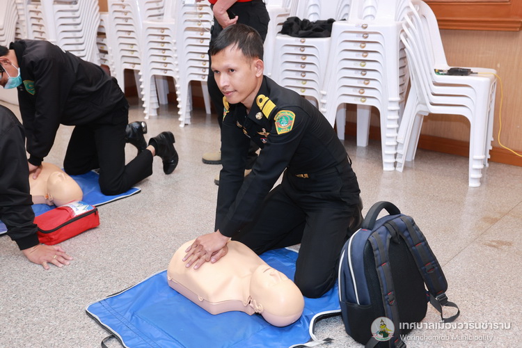 วันที่ 28 มกราคม 2568 เวลา 09.00 น. ฝ่ายป้องกันและบรรเทาสาธารณภัย สำนักปลัดเทศบาล จัดโครงการอบรมการปฐมพยาบาลเบื้องต้นและการช่วยฟื้นคืนชีพ (CPR) ประจำปี 2568 เพื่อให้ความรู้ความเข้าใจแก่พนักงานเทศบาลได้มีความรู้ความเข้าใจเบื้องต้นให้แก่ผู้ประสบภัยกรณีฉุกเฉินในการปฐมพยาบาลเบื้องต้นและการช่วยฟื้นคืนชีพ (CPR) ได้อย่างถูกต้อง รวดเร็ว มีประสิทธิภาพ และประสิทธิผล ถูกต้องตามหลักวิชาการ ลดการสูญเสียที่อาจจะเกิดขึ้นให้น้อยที่สุด โดยในพิธีได้รับเกียรติจากนายณรงชัย ประสิทธิ์ภูริปรีชา รองนายกเทศมนตรีมาเป็นประธาน พร้อมด้วยคณะผู้บริหาร สมาชิกสภาเทศบาล และหัวหน้าส่วนการงาน มาร่วมเป็นเกียรติ ซึ่งในการอบรมครั้งนี้ได้รับเกียรติจาก นางสาวอริสา สุพรรณ หัวหน้ากลุ่มงานควบคุมโรคไม่ติดต่อสุขภาพจิตและยาเสพติด สำนักงานสาธารณสุขจังหวัดอุบลราชธานี และคณะ เป็นวิทยากรบรรยายให้ความรู้ทั้งทั้งภาคทฤษฎีและภาคปฏิบัติในการอบรมในครั้งนี้