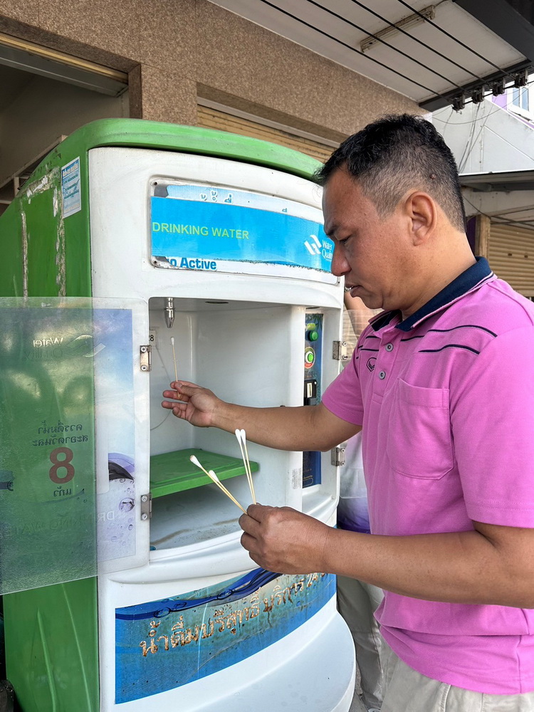 วันที่ 28 มกราคม 2568 เวลา 10.00 น. งานสุขาภิบาลและอนามัยสิ่งแวดล้อม กองสาธารณสุขและสิ่งแวดล้อม เทศบาลเมืองวารินชำราบ นำโดยนางสาวชนัญญา ศุภลักษณ์ นักวิชาการสุขาภิบาลปฏิบัติการ พร้อมด้วยนางสาวศิริมาส สิทธิโชค นักวิชาการสุขาภิบาลปฏิบัติการ และเจ้าหน้าที่กองสาธารณสุขและสิ่งแวดล้อม ได้ดำเนินการออกสำรวจเก็บตัวอย่างน้ำจากตู้หยอดเหรียญ เพื่อเป็นการเฝ้าระวังและตรวจสอบคุณภาพน้ำจากตู้หยอดเหรียญ ภายในเขตเทศบาลเมืองวารินชำราบ