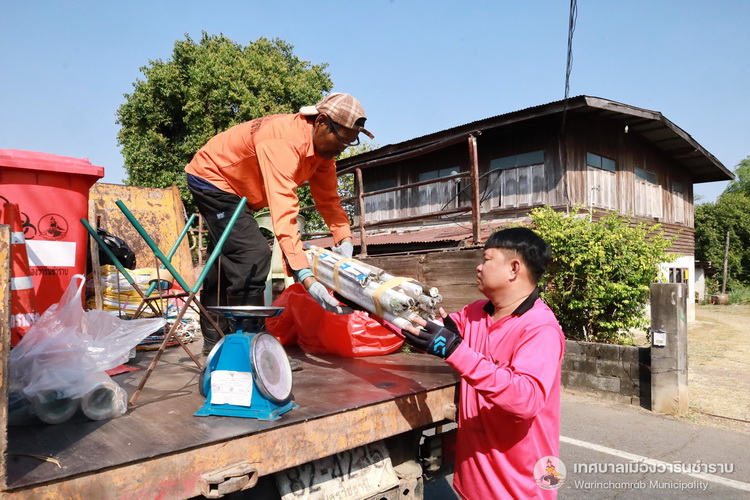วันที่ 5 กุมภาพันธ์ 2568 เวลา 09.00 น. งานสุขาภิบาลและอนามัยสิ่งแวดล้อม กองสาธารณสุขและสิ่งแวดล้อม เทศบาลเมืองวารินชำราบ นำโดยนางสาวชนัญญา ศุภลักษณ์ นักวิชาการสุขาภิบาลปฏิบัติการ ,นางสาวศิริมาส สิทธิโชค นักวิชาการสุขาภิบาลปฏิบัติการ และเจ้าหน้าที่กองสาธารณสุขและสิ่งแวดล้อม ได้ดำเนินการเก็บขยะอันตรายในชุมชน จำนวน 28 ชุมชน เพื่อเป็นการจัดเก็บขยะอันตรายให้ถูกต้อง และสร้างความตระหนักในการคัดแยกขยะอันตรายของชุมชนในเขตเทศบาลเมืองวารินชำราบ