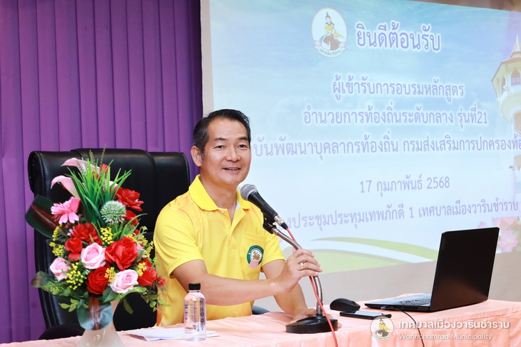 วันที่ 17 กุมภาพันธ์ 2568 เวลา 09.00 น ณ ห้องประชุมประทุมเทพภักดี 1 นายจีระชัย ไกรกังวาร นายกเทศมนตรี ได้มอบหมายให้ นายบุญยง จินตนะกุล รองนายกเทศมนตรี พร้อมด้วยนางรุ่งนภา ทับหนองฮี หัวหน้าสำนักปลัดเทศบาล รักษาราชการแทนปลัดเทศบาล และหัวหน้าส่วนการงานเทศบาลเมืองวารินชำราบ ให้การต้อนรับคณะผู้เข้ารับการอบรมหลักสูตร อำนวยการท้องถิ่นระดับกลาง รุ่นที่ 21 (จำนวน 54คน) สถาบันพัฒนาบุคลากรท้องถิ่น กรมส่งเสริมการปกครองท้องถิ่น นำโดยนายวิชากร จำปาดวง ผู้อำนวยการโครงการฯ ในการเข้าศึกษาดูงาน ด้านสวัสดิการสังคมผู้สูงอายุ และการจัดการสาธารณภัยของเทศบาลเมืองวารินชำราบ เพื่อเป็นการแลกเปลี่ยนประสบการณ์ และแลกเปลี่ยนประสบการณ์ในการบริหารงานท้องถิ่น