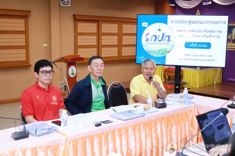 วันที่ 19 กุมภาพันธ์ 2568 เวลา 10.00 น. นายจีระชัย ไกรกังวาร นายกเทศมนตรี ได้มอบหมายให้ นายสรศักดิ์ บุญจันทร์ ผู้ทรงคุณวุฒิกองทุนหลักประกันสุขภาพเทศบาลเมืองวารินชำราบ เป็นประธานในการประชุมคณะกรรมการกองทุนหลักประกันสุขภาพเทศบาลเมืองวารินชำราบ ครั้งที่ 3/2568 ในการประชุมครั้งนี้เป็นการรับรองรายงานการประชุม ครั้งที่ 2/2568 เมือวันที่ 9 ธันวาคม 2567 และรายงานสถานะทางการเงินประจำเดือนธันวาคม 2567- มกราคม 2568 และการพิจารณาอนุมัติโครงการที่ขอรับการสนับสนุนงบประมาณจากกองทุนหลักประกันสุขภาพเทศบาลเมืองวารินชำราบ จำนวน 8 โครงการ