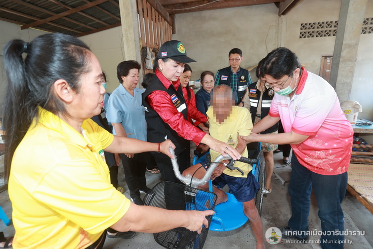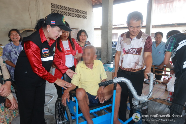 วันที่ 19 กุมภาพันธ์ 2568 นายจีระชัย ไกรกังวาร นายกเทศมนตรีเมืองวารินชำราบ ได้มอบหมายให้ นายบุญยง จินตนะกุล รองนายกเทศมนตรีเมืองวารินชำราบ พร้อมด้วยนางรุ่งนภา ทับหนองฮี หัวหน้าสำนักปลัดเทศบาล รักษาราชการแทนปลัดเทศบาล ให้การต้อนรับ นางกรรณิกา ตันติศิรินทร์ รองนายกองค์การบริหารส่วนจังหวัดอุบลราชธานี พร้อมด้วยนางสาวปริมภรณ์ ศรีวงษ์รักษ์ ผู้อำนวยการกองสวัสดิการสังคม และเจ้าหน้าที่ ในการลงพื้นที่ มอบรถวีลแชร์ และรถสามล้อโยก ให้กับคนพิการ จำนวน 1 ราย ที่ชุมชนหนองบก เขตเทศบาลเมืองวารินชำราบ ทั้งนี้เพื่อเป็นการช่วยเหลือเบื้องต้น ให้ผู้พิการสามารถช่วยเหลือตนเองได้และได้รับความสะดวกในการดำเนินชีวิตและการประกอบอาชีพ ตลอดจนเป็นการแบ่งเบาภาระของผู้ดูแลช่วยเหลือ อีกทั้งยังเป็นการพัฒนาคุณภาพชีวิตของผู้พิการให้ดีขึ้นต่อไป