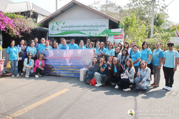 วันที่ 21 กุมภาพันธ์ 2568 เวลา 09.00 น. ณ ศูนย์เรียนรู้เพื่อการจัดการสิ่งแวดล้อมอย่างยั่งยืน ชุมชนชลประทาน นายจีระชัย ไกรกังวาร นายกเทศมนตรี ได้มอบหมายให้ นายบุญยง จินตนะกุล รองนายกเทศมนตรี พร้อมด้วย หัวหน้าส่วนการงานเทศบาลเมืองวารินชำราบ และคณะทำงานศูนย์การเรียนรู้ฯ ชุมชนชลประทาน ให้การต้อนรับคณะผู้บริหาร สมาชิกสภาองค์การบริหารส่วนตำบล หัวหน้าส่วนการงาน พนักงาน จากองค์การบริหารส่วนตำบลนิคมสร้างตนเอง อำเภอพิมาย จังหวัดนครราชสีมา นำโดยนายบุญชู ศรีโพธิ์ นายกองค์การบริหารส่วนตำบลนิคมสร้างตนเอง ในการศึกษาดูงานด้านการบริหารจัดการขยะภายในชุมชนของชุมชนชลประทาน ซึ่งเป็นชุมชนต้นแบบในเขตเทศบาลเมืองวารินชำราบที่ประสบความสำเร็จในการลดปริมาณขยะภายในชุมชน ภายใต้การทำกิจกรรมโครงการชุมชนปลอดขยะ Zero Waste ด้วยการนำขยะมารีไซเคิลผลิตเป็นสิ่งของเครื่องใช้ต่างๆ อาทิ ถังขยะลดโลกร้อน,ไม้กวาดจากขวดพลาสติก, เสื่อจากถุงพลาสติก, ผ้ากันเปื้อนจากป้ายไวนิล, เตาชีวมวลจากหม้อหุงข้าวที่ไม่ใช้แล้ว เป็นต้น
