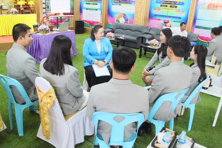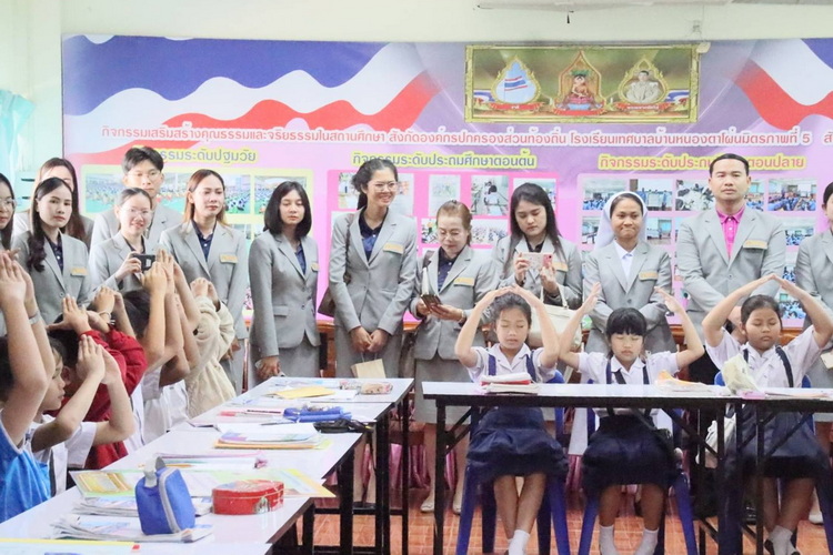 วันที่ 21 กุมภาพันธ์ 2568 นายวีระชาติ สานุสันต์ ผู้อำนวยการโรงเรียนเทศบาลบ้านหนองตาโผ่น มิตรภาพที่ 5 พร้อมด้วยคณะครู และนักเรียน ได้ให้การต้อนรับ คณาจารย์และนักศึกษาระดับปริญญาโท สาขาวิชาการบริหารการศึกษา มหาวิทยาลัยราชภัฏอุบลราชธานี นำโดย ผศ.นเรศ ขันธะรี คณบดีคณะครุศาสตร์ มหาวิทยาลัยราชภัฏอุบลราชธานี ในการศึกษาดูงานและเก็บข้อมูลการวิจัย หัวข้อ แนวทางวิธีการปฏิบัติที่เป็นเลิศด้านการจัดกิจกรรมเพื่อพัฒนาคุณธรรมจริยธรรมของนักเรียน : กรณีศึกษาโรงเรียนเทศบาลบ้านหนองตาโผ่น มิตรภาพที่ 5 โดยได้เยี่ยมชมการจัดการเรียนการสอน สังเกตพฤติกรรมนักเรียนในชั้นเรียน ด้านการส่งเสริมคุณธรรมจริยธรรมของนักเรียนในการจัดการเรียนรู้ และสัมภาษณ์ซักถามคณะครู ถึงแนวทางวิธีการปฏิบัติในการจัดกิจกรรมเพื่อการพัฒนาคุณธรรมจริยธรรมของนักเรียนโรงเรียนเทศบาลบ้านหนองตาโผ่น มิตรภาพที่ 5
