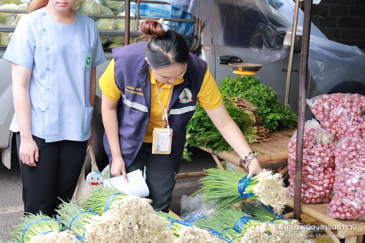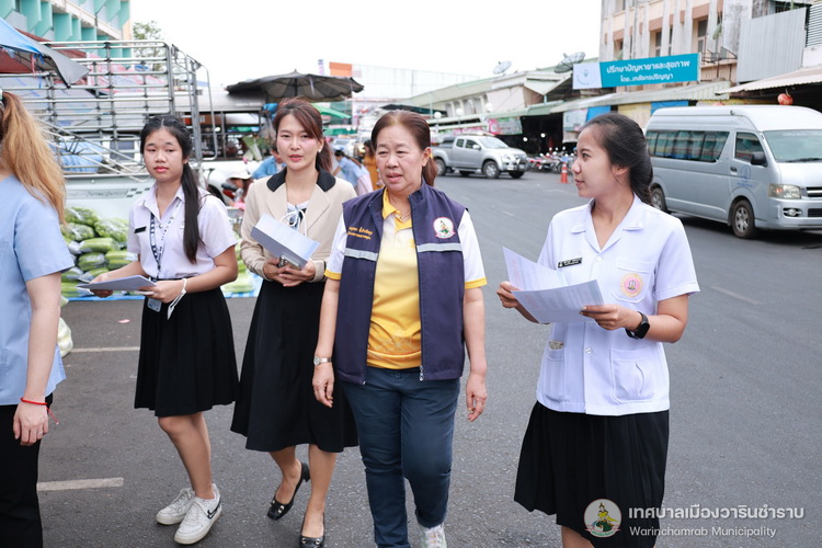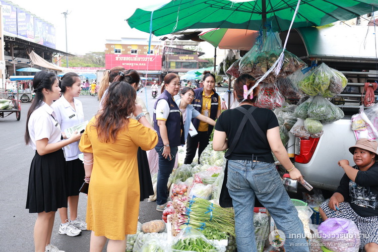 วันที่ 24 กุมภาพันธ์ 2568 เวลา 15.00 น. ณ ตลาดสดเทศบาลเมืองวารินชำราบ แห่งที่ 1 กองสาธารณสุขและสิ่งแวดล้อม เทศบาลเมืองวารินชำราบ นำโดยนางพฤกษา ตั้งกิจวนิชกุล ผู้อำนวยการกองสาธารณสุขและสิ่งแวดล้อม พร้อมด้วยเจ้าหน้าที่กองสาธารณสุขและสิ่งแวดล้อม ร่วมกับสาธารณสุขอำเภอวารินชำราบ และภญ.รุ่งนภา กงวงษ์ เภสัชกรชำนาญการพิเศษ กลุ่มงานเวชกรรมสังคม โรงพยาบาลวารินชำราบ ลงพื้นทีประชาสัมพันธ์แจ้งเตือนเฝ้าระวังและหลีกเลี่ยงการบริโภคต้นหอมที่มีคราบสีฟ้า เนื่องจากมีการปนเปื้อนสาร สารแมนโคเซบ (Mancozeb) ซึ่งมีความเสี่ยงอันตรายต่อสุขภาพในระบบสืบพันธุ์และเป็นอันตรายต่อทารก