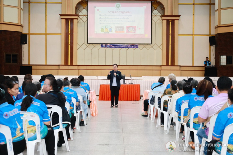 วันที่ 28 กุมภาพันธ์ 2568 เวลา 09.00 น. ณ หอประชุมประชาวาริน งานศูนย์บริการสาธารณสุข กองสาธารณสุขและสิ่งแวดล้อม ได้จัดโครงการอบรมเสริมสร้างสุขภาพ เฝ้าระวังและป้องกันโรค ในพื้นที่เทศบาลเมืองวารินชำราบ แก่อาสาสมัครสาธารณสุข (อสม.) เทศบาลเมืองวารินชำราบ และประชาชนทั่วไป ประจำเดือนกุมภาพันธ์ 2568 เพื่อเป็นการให้ความรู้เรื่องโรคต่างๆ และทบทวนความรู้ด้านการส่งเสริมสุขภาพแก่คนในชุมชน จากนั้นได้มีการมอบใบประกาศ สำหรับผู้ที่ผ่านการอบรมหลักสูตรผู้ดูแลผู้สูงอายุ (Caregiver) จำนวน 70 ชั่วโมง สำหรับการอบรมในครั้งนี้เป็นการให้ความรู้ในเรื่องการจัดการมูลฝอย โดยนางสาวสุดาสวรรค์ สลักคำ ตำแหน่ง นักวิชาการสาธารณสุขชำนาญการ จากศูนย์อนามัยที่ 10 อุบลราชธานี มาเป็นวิทยากรให้ความรู้ในครั้งนี้