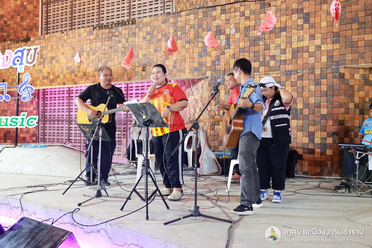วันที่ 28 กุมภาพันธ์ 2568 ณ ลานสุขใจ สนามกีฬาทุ่งคำน้ำแซบ เทศบาลเมืองวารินชำราบ จัดกิจกรรม "ดนตรีสร้างสุข" ซีซั่นที่ 2 เพื่อเปิดโอกาสให้ นักเรียน นักศึกษา และประชาชน ได้มีพื้นที่แสดงความสามารถทางด้านดนตรี และยังเป็นการส่งเสริมให้เด็ก เยาวชน ประชาชน มีใจรักและตระหนักถึงคุณค่าของศิลปะการดนตรี รวมถึงยังเป็นการสร้างความผ่อนคลาย และสร้างสุขภาวะทางอารมณ์ที่ดีแก่ประชาชนในพื้นที่ อีกทั้งยังเป็นการส่งเสริมการจำหน่ายสินค้า ที่เป็นมิตรต่อสิ่งแวดล้อมจากชุมชนในเขตเทศบาลเมืองวารินชำราบ ซึ่งในสัปดาห์นี้เป็นการแสดงจากวง introvert และวงข้าวหอม มาร่วมสร้างความสนุก และความสุขใจ แก่ผู้ที่มาร่วมงานในครั้งนี้ พบกับกิจกรรม "ดนตรีสร้างสุข" ทุกเย็นวันศุกร์‘ ตั้งแต่เวลา 17.00 น. เป็นต้นไป ณ ลานสุขใจ สนามทุ่งคำน้ำแซบ