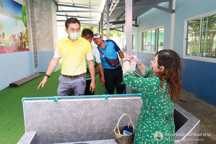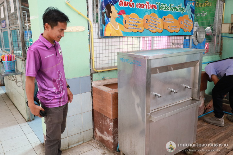วันที่ 5 มีนาคม 2568 เวลา 09.00 น. เจ้าหน้าที่กองสาธารณสุขและสิ่งแวดล้อม และเจ้าหน้าที่กองช่าง เทศบาลเมืองวารินชำราบ ลงพื้นที่โรงเรียนในสังกัดเทศบาลทั้ง 3 แห่ง ในการตรวจสุขาภิบาลน้ำดื่มและตรวจวิเคราะห์น้ำดื่ม และให้คำแนะนำด้านความปลอดภัยระบบไฟฟ้า เพื่อเป็นการเฝ้าระวังและสร้างความปลอดภัยแก่เด็กนักเรียน ภายในสถานศึกษา ทั้ง 3 แห่ง