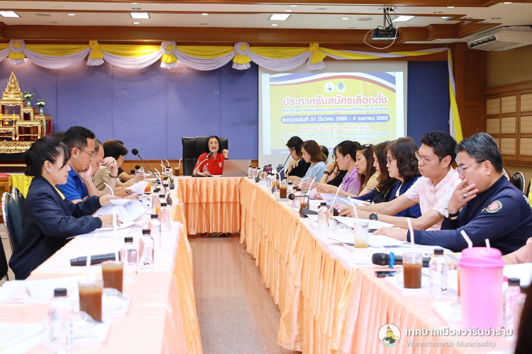 วันที่ 6 มีนาคม 2568 เวลา 13.00 น. ณ ห้องประชุมประทุมเทพภักดี 1 นางรุ่งนภา ทับหนองฮี รองปลัดเทศบาล รักษาราชการแทนปลัดเทศบาล พร้อมด้วย หัวหน้าส่วนการงาน และพนักเทศบาลเมืองวารินชำราบ ได้ประชุมเตรียมความพร้อมรับการเลือกตั้งสมาชิกสภาเทศบาลและนายกเทศมนตรีเมืองวารินชำราบ ทั้งนี้สืบเนื่องจากสมาชิกสภาเทศบาล และนายกเทศมนตรีเมืองวารินชำราบ ที่มาจากการเลือกตั้งเมื่อวันที่ 28 มีนาคม 2564 จะครบวาระในวันที่ 27 มีนาคม 2568 จึงต้องจัดให้มีการเลือกตั้งภายใน 45 วัน นับแต่วันที่จากสมาชิกสภาเทศบาล และนายกเทศมนตรีดำรงตำแหน่งครบวาระ โดยในที่ประชุมได้แจ้งรายงานผลการรับสมัครคณะกรรมการการเลือกตั้งประจำเทศบาลเมืองวารินชำราบ จำนวน 3 ท่าน การพิจารณาแผนการเลือกตั้งสมาชิกสภาเทศบาล และนายกเทศมนตรีเมืองวารินชำราบ ประจำปี 2568 การให้ความเห็นชอบร่างคำสั่ง จัดตั้งศูนย์ประสานงานการเลือกตั้งสมาชิกสภาเทศบาล และนายกเทศมนตรีเมืองวารินชำราบ รวมถึงการเสนอแผนการจัดการเลือกตั้งของแต่ละกอง/ฝ่าย