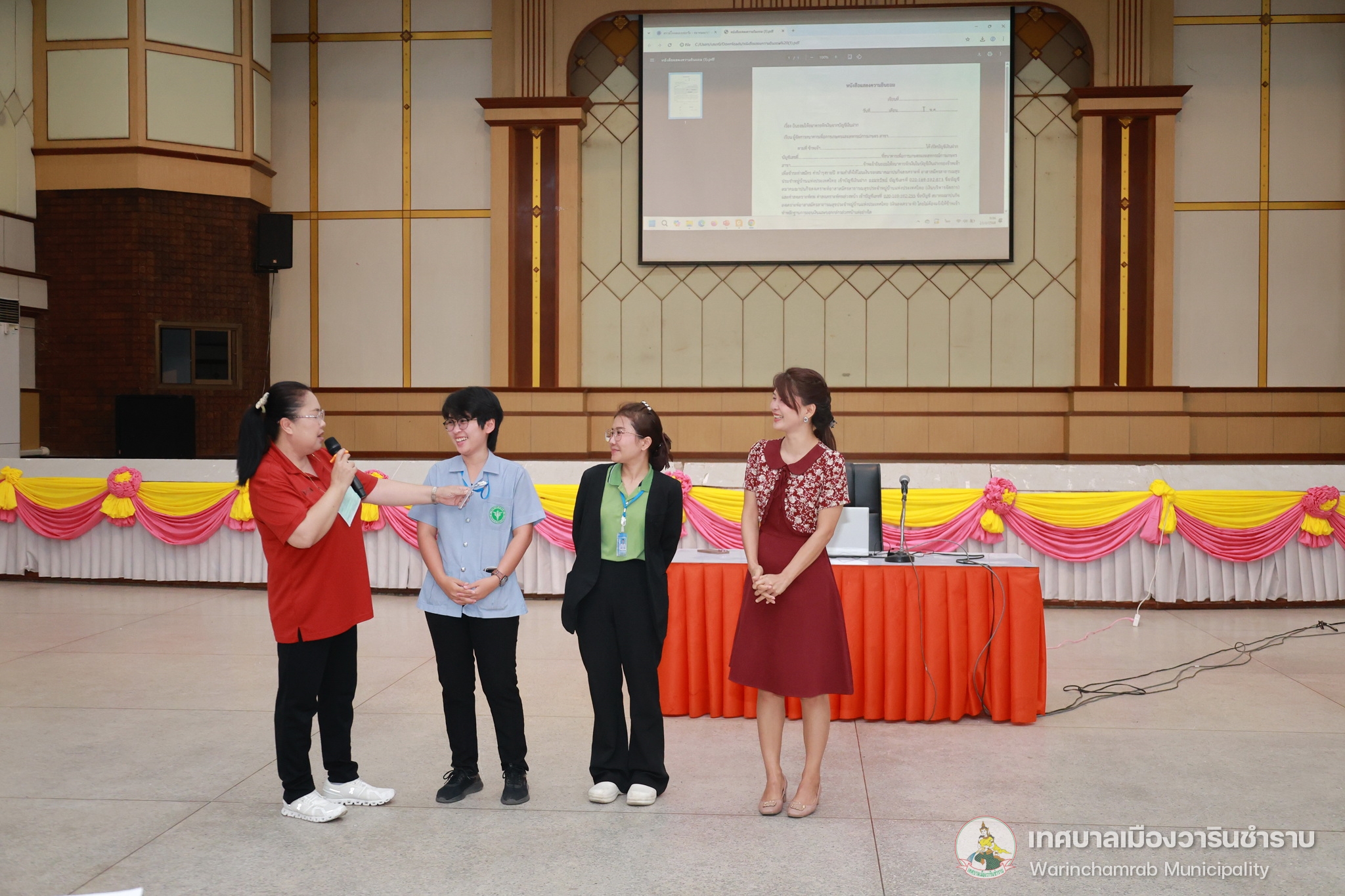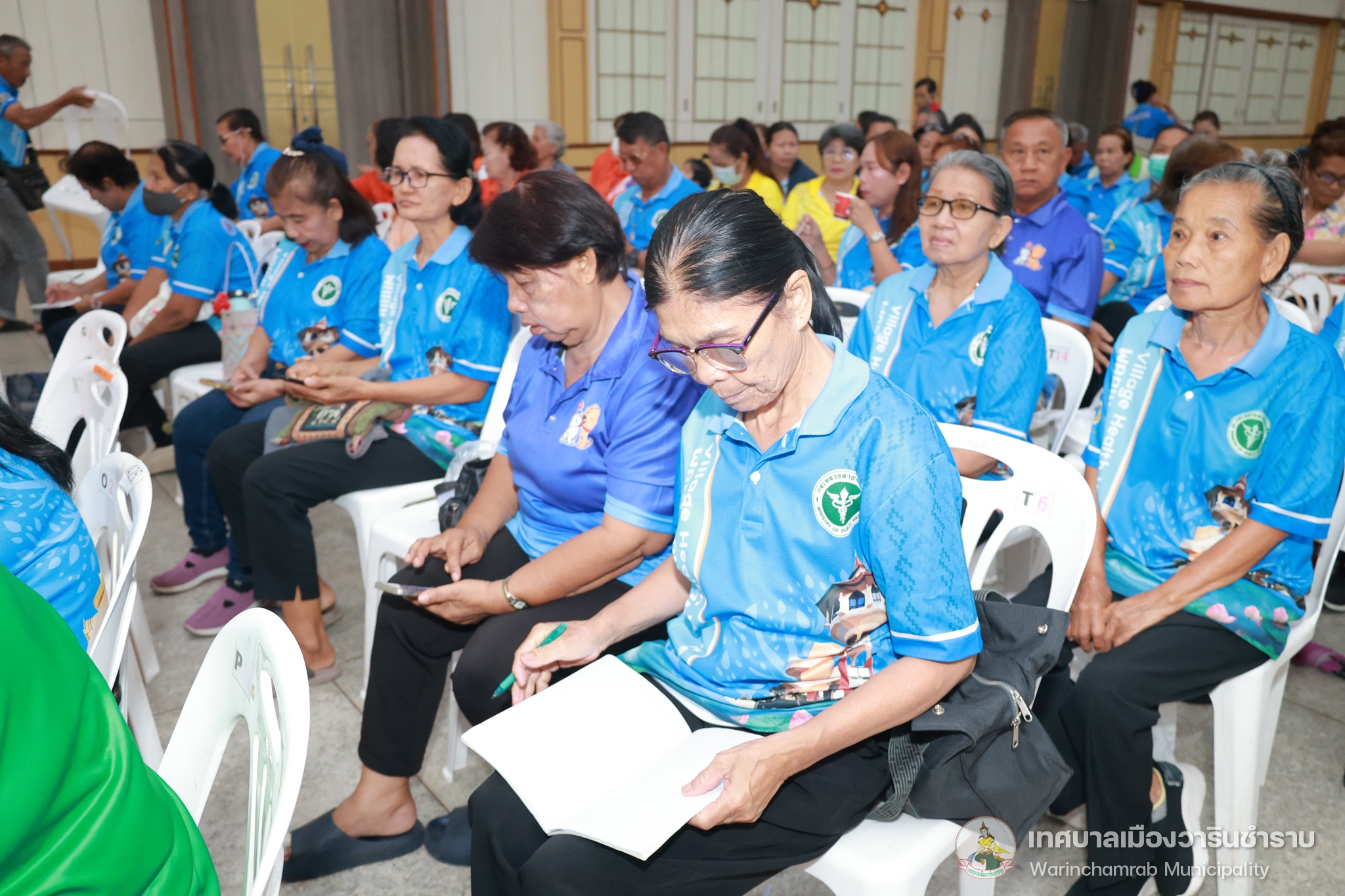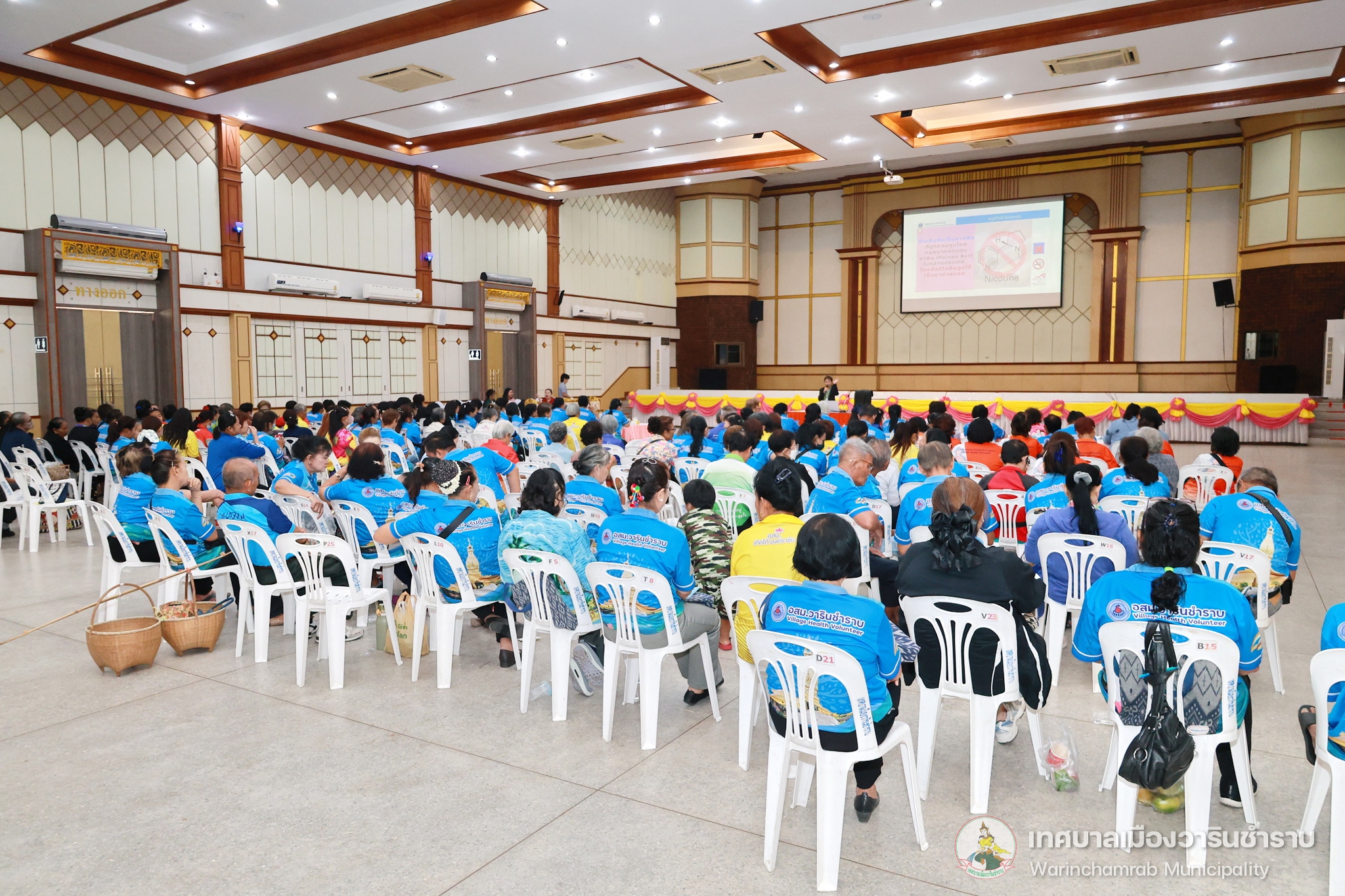 วันที่ 23 เมษายน 2568 เวลา 09.00 น. ณ หอประชุมประชาวาริน งานศูนย์บริการสาธารณสุข กองสาธารณสุขและสิ่งแวดล้อม ได้จัดโครงการอบรมเสริมสร้างสุขภาพ เฝ้าระวังและป้องกันโรค ในพื้นที่เทศบาลเมืองวารินชำราบ แก่อาสาสมัครสาธารณสุข (อสม.) เทศบาลเมืองวารินชำราบ และประชาชนทั่วไป เพื่อเป็นการให้ความรู้เรื่องโรคต่างๆ และทบทวนความรู้ด้านการส่งเสริมสุขภาพแก่คนในชุมชน สำหรับการอบรมในครั้งนี้เป็นการให้ความรู้ในเรื่องการใช้ผลิตภัณฑ์สุขภาพอย่างไรถึงจะปลอดภัย และการบรรยายให้ความรู้ในเรื่องโทษของบุหรี่ โดยภญ.รุ่งนภา กงวงษ์ เภสัชกรชำนาญการพิเศษ กลุ่มงานเวชกรรมสังคม โรงพยาบาลวารินชำราบ และคณะมาเป็นวิทยากรให้ความรู้ในครั้งนี้