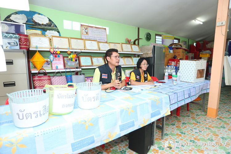 วันที่ 31 ตุลาคม 2567 เทศบาลเมืองวารินชำราบ ดำเนินการจัดการเลือกกรรมการชุมชน (แทนตำแหน่งที่ว่าง) ในเขตเทศบาลเมืองวารินชำราบ ใน 2 ชุมชน ซึ่งในภาคเช้าเป็นการเลือกกรรมการชุมชน(แทนตำแหน่งที่ว่าง) ในชุมชนหาดสวนสุข จำนวนตำแหน่งที่ว่าง 1 ตำแหน่ง และในภาคบ่ายเป็นการเลือกกรรมการชุมชน(แทนตำแหน่งที่ว่าง) ในชุมชนแสนสำราญ จำนวนตำแหน่งที่ว่าง 1 ตำแหน่ง ซึ่งบรรยากาศการเลือกกรรมการชุมชน ทั้ง 2 ชุมชน ในการนี้นางรุ่งนภา ทับหนองฮี หัวหน้าสำนักปลัดเทศบาล รักษาราชการแทนปลัดเทศบาล พร้อมด้วยนางสาวปริยา วงศ์กาฬสินธุ์ ผู้อำนวยการกองสวัสดิการสังคม ได้เข้าตรวจเยี่ยมการจัดการประชุมเลือกกรรมการชุมชน ซึ่งบรรยากาศการเลือกกรรมการชุมชน (แทนตำแหน่งที่ว่าง) ทั้ง 2 ชุมชน เป็นไปด้วยความเรียบร้อย