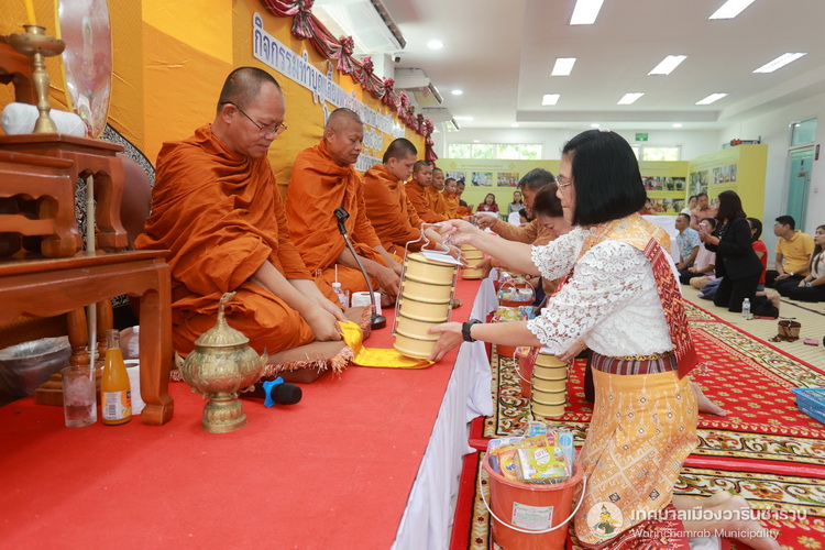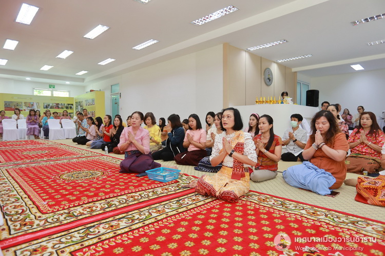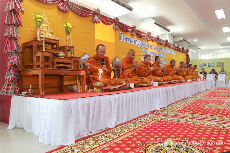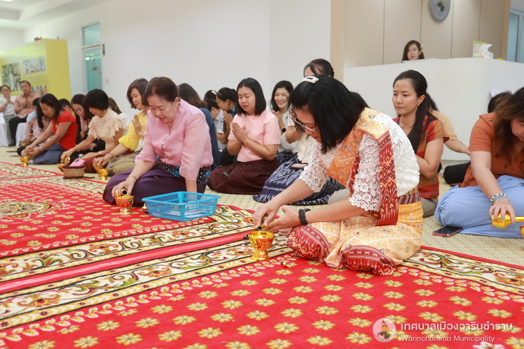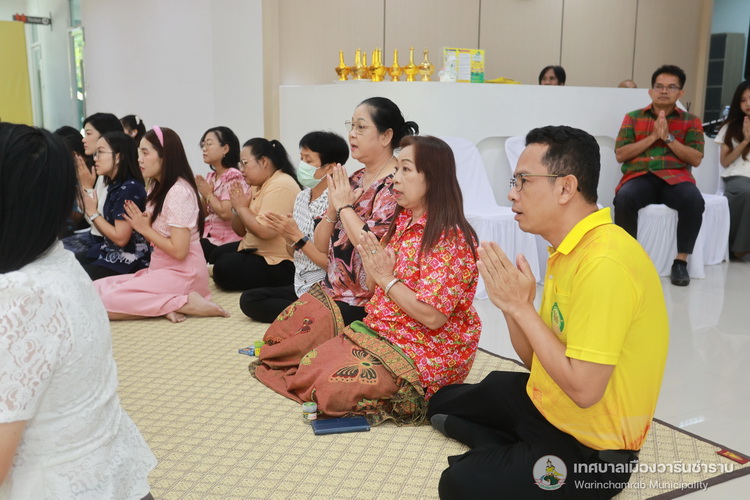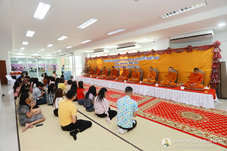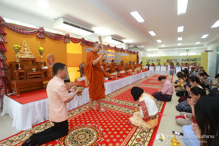 วันที่ 24 เมษายน 2568 เวลา 10.30 น. ณ อาคารสำนักงานใหม่ เทศบาลเมืองวารินชำราบ นางรุ่งนภา ทับหนองฮี รองปลัดเทศบาล รักษาราชการแทนปลัดเทศบาล ปฏิบัติหน้าที่นายกเทศมนตรีเมืองวารินชำราบ พร้อมด้วยหัวหน้าส่วนการงาน พนักงานเทศบาล ผู้บริหารและพนักงานครูจากโรงเรียนในสังกัด ลูกจ้างและพนักงานจ้าง ร่วมทำบุญถวายภัตตาหารเพลแด่พระภิกษุสงฆ์ เนื่องในวันเทศบาลประจำปี 2568 เพื่อเป็นการทำบุญอุทิศส่วนกุศลให้แก่เจ้าหน้าที่เทศบาล และญาติมิตรชาวเทศบาลที่ได้ล่วงลับไปแล้ว รวมถึงเพื่อความเป็นศิริมงคลและเป็นกุศลแก่ หัวหน้าส่วนการงาน พนักงานเทศบาล ผู้บริหารและพนักงานครูจากโรงเรียนในสังกัด และพนักงานเทศบาลเมืองวารินชำราบ