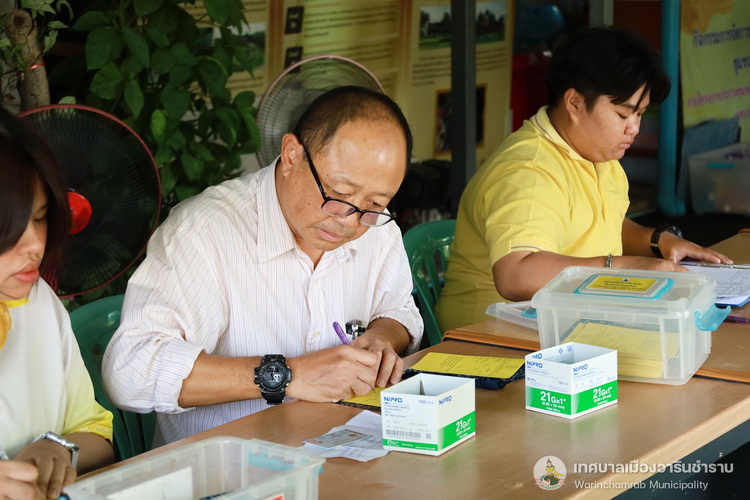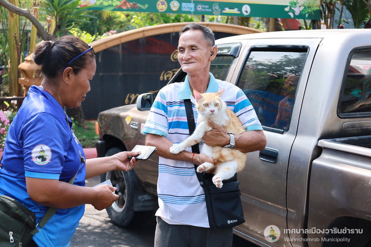 วันที่ 28 เมษายน 2568 เวลา 09.00 น. นายอภิวุฒิ ภะวัง นายสัตวแพทย์ชำนาญการ พร้อมด้วยเจ้าหน้าที่กองสาธารณสุขและสิ่งแวดล้อม ได้ออกหน่วยให้บริการฉีดวัคซีนป้องกันโรคพิษสุนัขบ้าและสำรวจประชากรสัตว์เลี้ยง ณ ศาลาอเนกประสงค์ SML ชุมชนชลประทาน และชุมชนห้าแยกวงกลมตามโครงการรณรงค์ฉีดวัคซีนป้องกันพิษสุนัขบ้าในสัตว์เลี้ยง ประจำปีงบประมาณ 2568 เพื่อเป็นการป้องกันและควบคุมโรคพิษสุนัขบ้าภายในชุมชนเขตเทศบาลเมืองวารินชำราบ โดยมีประชาชนจากชุมชนใกล้เคียงได้นำสุนัขและสัตว์เลี้ยงมาเข้ารับการฉีดวัคซีนกันเป็นจำนวนมาก