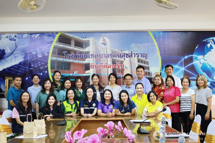 วันที่ 7 พฤษภาคม 2568 กองสาธารณสุขและสิ่งแวดล้อม เทศบาลเมืองวารินชำราบ โดย นางพฤกษา ตั้งกิจวนิชกุล ผู้อำนวยการกองสาธารณสุขฯ พร้อมด้วยนางพีระพิชญ์ รวมธรรม หัวหน้าฝ่ายบริหารงานสาธารณสุข และเจ้าหน้าที่ ได้ออกให้คำแนะนำด้านสุขาภิบาลอนามัยสิ่งแวดล้อม สุขาภิบาลอาหาร และการควบคุมโรคติดต่อ แก่โรงเรียนเทศบาลบ้านสุขสำราญ และโรงเรียนเทศบาลวารินวิชาชาติ ตามแผนการเตรียมความพร้อมด้านสุขาภิบาลอนามัยสิ่งแวดล้อม สุขาภิบาลอาหาร และการควบคุมโรคติดต่อ ก่อนเปิดภาคเรียนที่ 1 ปีการศึกษา 2568 ของสถานศึกษาในสังกัดเทศบาลเมืองวารินชำราบ โดยมีผู้อำนวยการสถานศึกษา พร้อมด้วย รองผู้อำนวยการสถานศึกษา และครูอนามัย เข้ารับการให้คำแนะนำในครั้งนี้