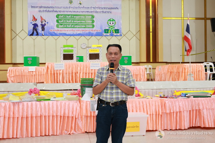 วันที่ 9 พฤษภาคม 2568 เวลา 09.00 น. ณ หอประชุมประชาวาริน กองยุทธศาสตร์และงบประมาณ เทศบาลเมืองวารินชำราบ ได้จัดโครงการฝึกอบรมให้ความรู้แก่เจ้าพนักงานผู้ดำเนินการเลือกตั้ง(คณะกรรมการประจำหน่วยเลือกตั้ง เจ้าหน้าที่รักษาความปลอดภัยประจำที่เลือกตั้งและผู้ช่วยเหลือการปฏิบัติงานในการเลือกตั้ง) ในการเลือกตั้งสมาชิกสภาเทศบาลและนายกเทศมนตรีเมืองวารินชำราบ โดยได้รับเกียรติจากนายวิเศษ หิรัญเทศ คณะกรรมการการเลือกตั้ง เป็นประธานในพิธี พร้อมด้วยคณะกรรมการประจำเทศบาลเมืองวารินชำราบ และหัวหน้าส่วนการงาน ร่วมเป็นเกียรติในเป็นผู้กล่าวเปิดการฝึกอบรมให้ความรู้แก่เจ้าพนักงานผู้ดำเนินการเลือกตั้ง (คณะกรรมการประจำหน่วยเลือกตั้ง เจ้าหน้าที่รักษาความปลอดภัยประจำที่เลือกตั้งและผู้ช่วยเหลือการปฏิบัติงานในการเลือกตั้ง) ในการเลือกตั้งสมาชิกสภาเทศบาลและนายกเทศมนตรีเมืองวารินชำราบ เขตเลือกตั้งที่ 3 และทบทวนหน้าที่ก่อนฝึกปฏิบัติหน้าที่ในการจัดการออกเสียงลงคะแนน ซึ่งการอบรมในครั้งนี้ ได้รับเกียรติจากนางรุ่งนภา ทับหนองฮี รองปลัดเทศบาล รักษาราชการแทนปลัดเทศบาล ปฏิบัติหน้าที่นายกเทศมนตรีเมืองวารินชำราบ พร้อมด้วยจ่าเอกประกาศ ตระการไทย หัวหน้าฝ่ายป้องกันและบรรเทาสาธารณภัย และนายทรงยศ แสนทวีสุข หัวหน้าฝ่ายบริการและเผยแพร่วิชาการ มาเป็นวิทยากรบรรยายให้ความรู้ในการอบรมในครั้งนี้