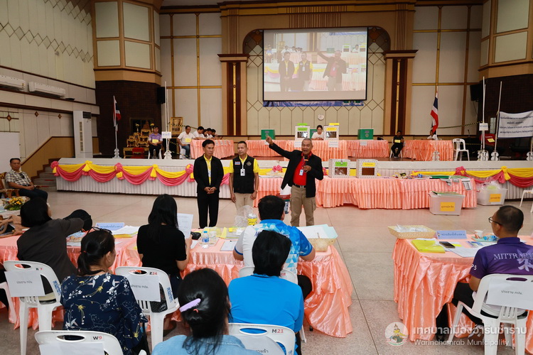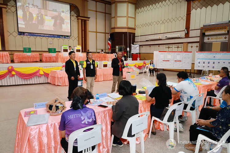 วันที่ 9 พฤษภาคม 2568 เวลา นายวิเศษ หิรัญเทศ คณะกรรมการการเลือกตั้ง พร้อมด้วยนางรุ่งนภา ทับหนองฮี ผู้อำนวยการการเลือกตั้งประจำเทศบาลเมืองวารินชำราบ ได้ให้การต้อนรับ ผู้ตรวจการเลือกตั้งประจำจังหวัดอุบลราชธานี ซึ่งได้มาตรวจเยี่ยมความเรียบร้อยในการฝึกอบรมคณะกรรมการประจำหน่วยเลือกตั้งและเจ้าหน้าที่รักษาความปลอดภัย ในการเลือกตั้งสมาชิกสภาเทศบาลและนายกเทศมนตรีเมืองวารินชำราบ โดยการอบรมเป็นไปด้วยความเรียบร้อย