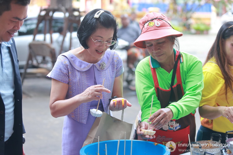 วันที่ 30 พฤษภาคม 2568 เวลา 10.00 น. ณ วัดผาสุการาม นางรุ่งนภา ทับหนองฮี รองปลัดเทศบาล รักษาราชการแทนปลัดเทศบาล ปฏิบัติหน้าที่นายกเทศมนตรีเมืองวารินชำราบ เป็นประธานในพิธีเปิดโครงการ “ฟื้นชีวิต คืนชีวา สร้างคุณค่าเมืองวาริน” พร้อมด้วย หัวหน้าส่วนราชการ คณะผู้บริหาร ตัวแทนครู และนักเรียนในสังกัดเทศบาล เข้าร่วมกิจกรรมทำธุง ทำดอกเทียน และสอนตัดผม ภายใต้โครงการ “ฟื้นชีวิต คืนชีวา สร้างคุณค่าเมืองวาริน : การออกแบบนิเวศการเรียนรู้ของย่านเมืองเก่าวารินชำราบ ด้วยซอฟต์พาวเวอร์และทุนทางวัฒนธรรม” ภายใต้กรอบการวิจัย มหาวิทยาลัยอุบลราชธานี “การยกระดับการขับเคลื่อนเมืองแห่งการเรียนรู้ (Learning City)” ประจำปีงบประมาณ 2568 โดยมีพื้นที่ดำเนินการวิจัยในเขตเทศบาลเมืองวารินชำราบ