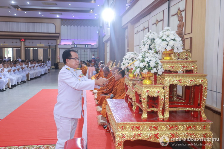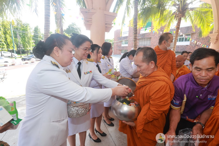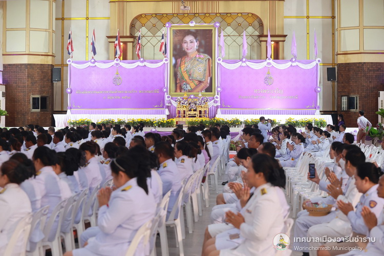 วันที่ 3 มิถุนายน 2568 เวลา 07.00 น. พนักงานเทศบาลเมืองวารินชำราบ ,ผู้บริหารสถานศึกษา และคณะครูจากโรงเรียนในสังกัด ร่วมพิธีทำบุญตักบาตรเพื่อถวายเป็นพระราชกุศล เนื่องในโอกาสวันเฉลิมพระชนมพรรษาสมเด็จพระนางเจ้าสุทิดา พัชรสุธาพิมลลักษณ พระบรมราชินี เนื่องในโอกาสวันเฉลิมพระชนมพรรษา ประจำปีพุทธศักราช 2568 ร่วมกับหน่วยงานส่วนต่างๆ และประชาชนในอำเภอวารินชำราบ โดยมีนายอุดมศักดิ์ นวลศิริ นายอำเภอวารินชำราบ เป็นประธานในพิธี ณ ห้องประชุมประชาวาริน