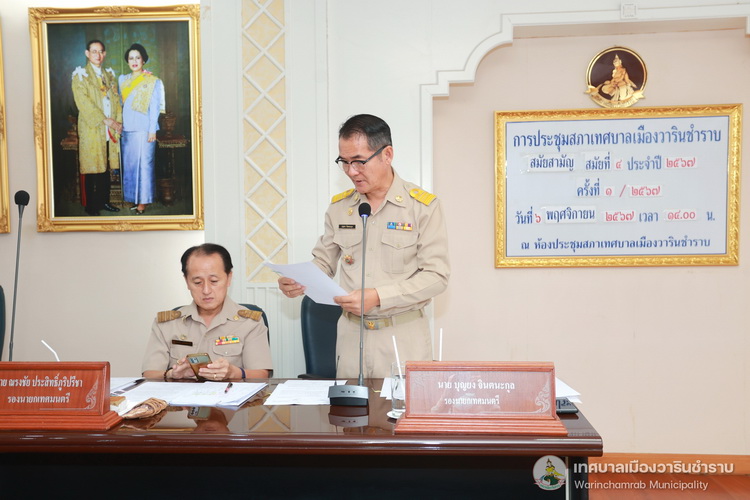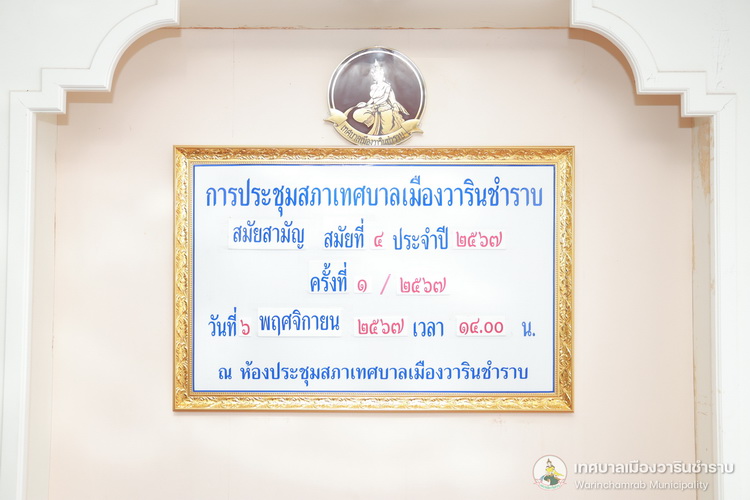 ประชุมสภาเทศบาลเมืองวารินชำราบ สมัยสามัญ สมัยที่ 4 ประจำปี 2567 ครั้งที่ 1/2567 วันพุทธที่ 6 พฤศจิกายน 2567 เวลา 14.00 น. ณ ห้องประชุมสภาเทศบาลเมืองวารินชำราบ