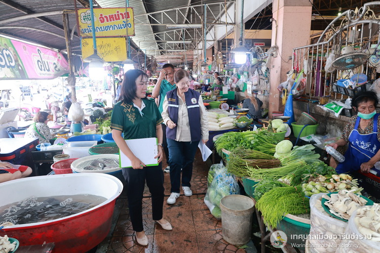 วันที่ 4 มิถุนายน 2568 เวลา 14.00 น. ณ ตลาดสดเทศบาลเมืองวารินชำราบ แห่งที่ 1 นางพฤกษา ตั้งกิจวนิชกุล ผู้อำนวยการกองสาธารณสุขและสิ่งแวดล้อม พร้อมด้วยนางพีระพิชญ์ รวมธรรม หัวหน้าฝ่ายบริหารงานสาธารณสุข และเจ้าหน้าที่กองสาธารณสุขและสิ่งแวดล้อม ให้การต้อนรับคณะกรรมการตรวจประเมิน“ตลาดดีมีมาตรฐานองค์กรปกครองส่วนท้องถิ่น” ประจำปี พ.ศ.2568 ได้ลงพื้นที่ภายในตลาดสดเทศบาลเมืองวารินชำราบแห่งที่ 1 ตามโครงการ“ตลาดดีมีมาตรฐานองค์กรปกครองส่วนท้องถิ่น” เพื่อพัฒนามาตรฐานการดำเนินงานของตลาดให้แหล่งท่องเที่ยวชุมชน และดึงดูดนักท่องเที่ยวเข้ามาใช้บริการ เป็นแหล่งสร้างงาน สร้างอาชีพให้กับประชาชนในท้องถิ่นและเป็นการดูแลความเรียบร้อย และการรักษาความสะอาดของตลาดไม่ให้ส่งผลกระทบต่อประชาชนและสิ่งแวดล้อม