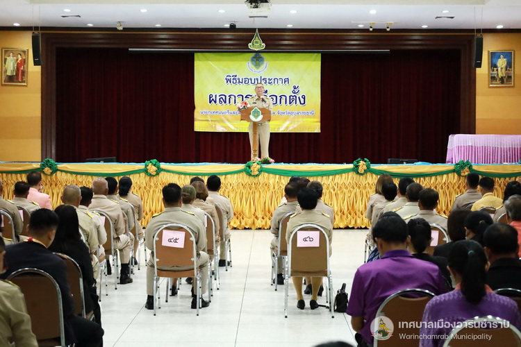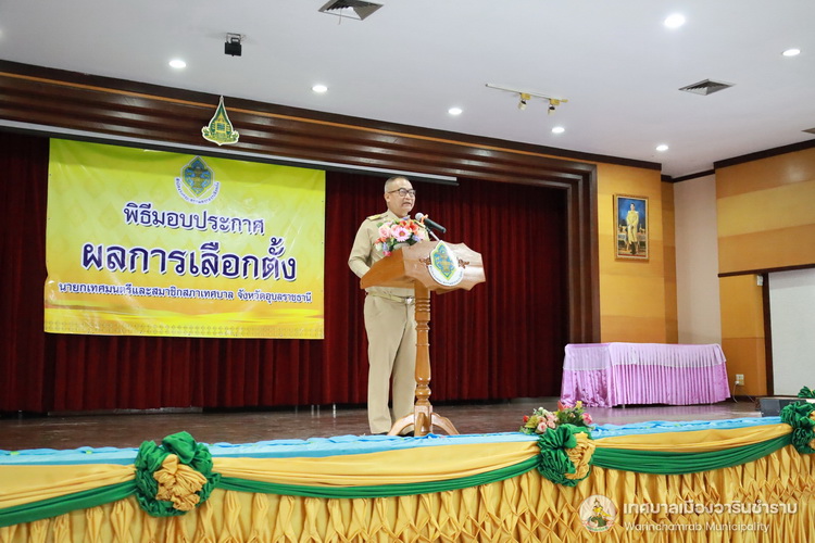 วันที่ 12 มิถุนายน 2568 เวลา 11.00 น. นายจีระชัย ไกรกังวาร นายกเทศมนตรีเมืองวารินชำราบ ได้มอบหมายให้นางรุ่งนภา ทับหนองฮี รองปลัดเทศบาล รักษาราชการแทน ปลัดเทศบาล เข้าร่วมพิธีรับมอบประกาศผลการเลือกตั้ง นายกเทศมนตรี และสมาชิกสภาเทศบาล จังหวัดอุบลราชธานี โดยมีว่าที่พันตรี อดิศักดิ์ น้อยสุวรรณ ผู้ว่าราชการจังหวัดอุบลราชธานี เป็นประธานในพิธี กล่าวแสดงความยินดีและแนวทางในการทำงานที่เป็นประโยชน์แก่ผู้ที่ได้รับการเลือกตั้ง ณ ห้องประชุมศักดิเดชน์ ศูนย์วิทยบริการและชุมชนสัมพันธ์ มหาวิทยาลัยสุโขทัยธรรมาธิราช อุบลราชธานี