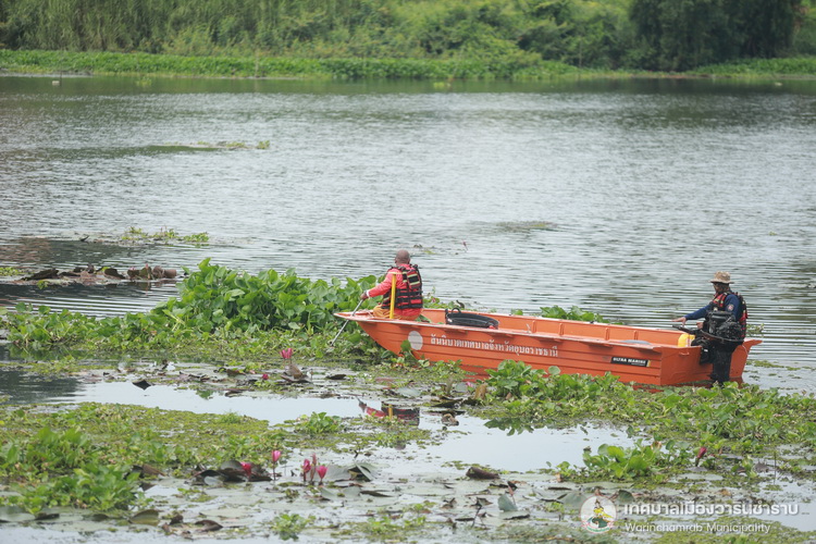 วันที่ 18 มิถุนายน 2568 ณ แหล่งน้ำกุดปลาขาว กองช่างสุขาภิบาล นำโดยนางธิติมา อึ้งประเสริฐ ผู้อำนวยการกองช่างสุขาภิบาล ได้นำเจ้าหน้าที่กองช่างสุขาภิบาล ร่วมกับเจ้าหน้าที่ป้องกันและบรรเทาสาธารณภัย ได้ดำเนินการขุดลอกผักตบชวาและวัชพืชในแหล่งน้ำ และพัฒนาฟื้นฟูและแก้ไขปัญหาแหล่งน้ำสาธารณะภายในเขตเทศบาลเมืองวารินชำราบให้มีคุณภาพที่ดีขึ้น และเป็นการรักษาความสมดุลของระบบนิเวศในแหล่งน้ำ ตามโครงการกำจัดผักตบชวาและวัชพืชในแหล่งน้ำ เพื่อเป็นการเฉลิมพระเกียรติพระบาทสมเด็จพระปรเมนทรรามาธิบดีศรีสินทรมหาวชิราลงกรณ พระวชิรเกล้าเจ้าอยู่หัว โดยได้รับการสนับสนุนเครื่องจักรขนาดใหญ่ และรถบรรทุกจากองค์การบริหารส่วนจังหวัดอุบลราชธานี