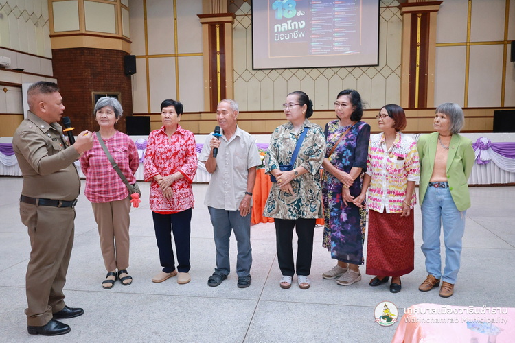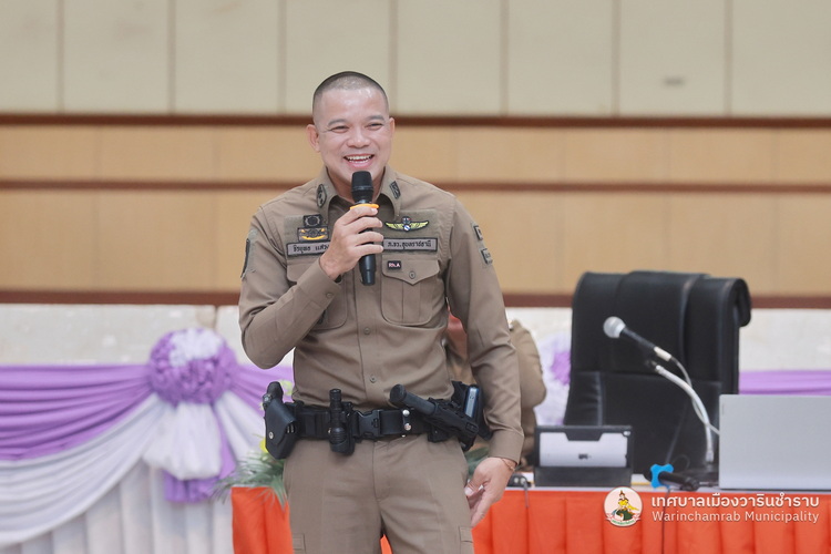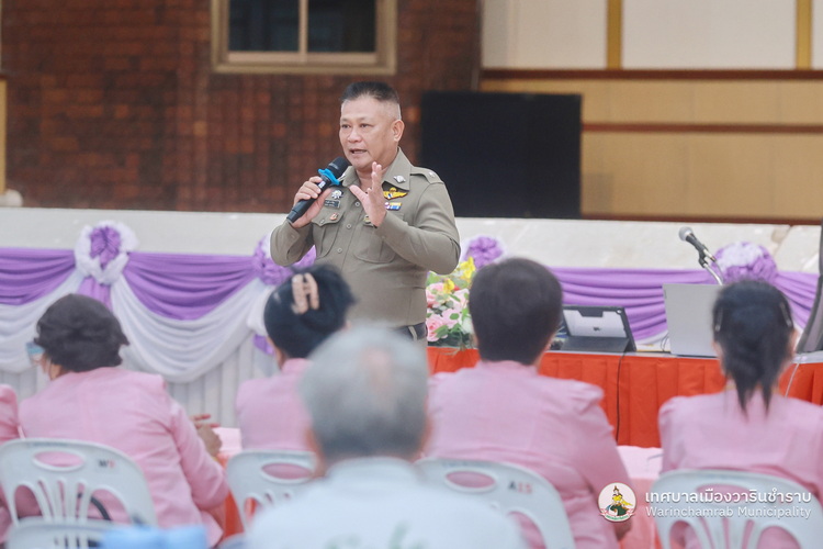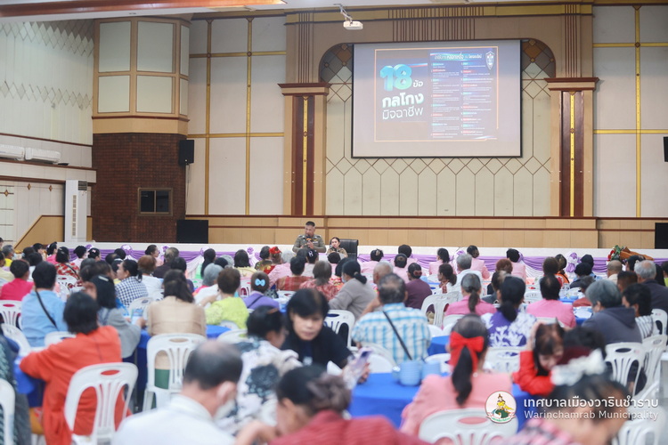 วันที่ 26 มิถุนายน 2568 เวลา 09.00 น. กองสาธารณสุขและสิ่งแวดล้อม เทศบาลเมืองวารินชำราบ ได้จัดการอบรมโครงการส่งเสริมสุขภาพผู้สูงวัย "ชะลอสูงวัย ชีวายืนยาว" ประจำปี 2568 โดยมี นางรุ่งนภา ทับหนองฮี รองปลัดเทศบาล รักษาราชการแทนปลัดเทศบาล รักษาราชการแทนนายกเทศมนตรีเมืองวารินชำราบ เป็นประธานในพิธีเปิดโครงการ ฯ ณ หอประชุมประชาวาริน ซึ่งการอบรมในครั้งนี้ เป็นการส่งเสริมความรู้ให้แก่ตัวแทนผู้สูงอายุในชุมชนทั้ง 28 ชุมชน และกิจกรรมนันทนาการ แลกเปลี่ยนเรียนรู้ซึ่งกันและกัน โดยได้รับเกียรติจาก พ.ต.ท.จิรยุทธ แสวงศรี สวป.สภ.วารินชำราบ, พ.ต.ต.หญิงนงค์เยาว์ หาญชนะ สวป.(ชส.)สภ.วารินชำราบ และ ร.ต.ต.ชาญชัย ชารีชุม รอง สว.(ป.)สภ.วารินชำราบ มาเป็นวิทยากรให้ความรู้ในเรื่องภัยออนไลน์ และกลโกงจากมิจฉาชีพ แก่เข้ารับการอบรมครั้งนี้