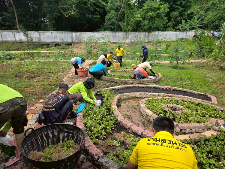 วันที่ 30 มิถุนายน 2568 จิตอาสาเทศบาลเมืองวารินชำราบ นำโดย นางรุ่งนภา ทับหนองฮี รองปลัดเทศบาล รักษาราชการแทนปลัดเทศบาล พร้อมด้วย จิตอาสาคณะทำงานศูนย์เรียน ฯ ชุมชนชลประทาน ลงพื้นที่ปรับปรุงภูมิทัศน์สวนสมุนไพร ตามโครงการ 1 อปท. 1 สวนสมุนไพร เฉลิมพระเกียรติพระบาทสมเด็จพระเจ้าอยู่หัว เนื่องในโอกาสวันเฉลิมพระชนมพรรษา 28 กรกฎาคม 2568 เพื่อเป็นการสนองพระราชปณิธานของพระบาทสมเด็จพระเจ้าอยู่หัว ในการ "สืบสาน รักษา และต่อยอด" หลักปรัชญาเศรษฐกิจพอเพียงและพระราชกรณียกิจด้านสมุนไพรของพระบาทสมเด็จพระบรมชนกาธิเบศร มหาภูมิพลอดุลยเดชมหาราช บรมนาถบพิตร และเพื่อเสริมสร้างคุณภาพชีวิตที่ดีของประชาชนอย่างยั่งยืน ตลอดจนขับเคลื่อนเป้าหมายการพัฒนาที่ยั่งยืน (Sustainable Development Goals : SDGs) ของกระทรวงมหาดไทย รวมถึงเพื่อให้องค์กรปกครองส่วนท้องถิ่นที่มีแหล่งเรียนรูสมุนไพรให้เด็ก เยาวชน และประชาชนในชุมชน ได้เห็นคุณค่าของสมุนไพรที่มีอยู่ในชุมชน รวมทั้งประโยชน์ต่อการรักษาสุขภาพ การอนุรักษ์และการใช้สมุนไพรไทยและสมุนไพรท้องถิ่นให้เกิดประโยชน์