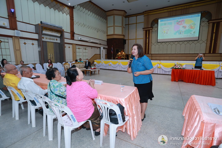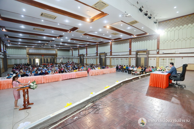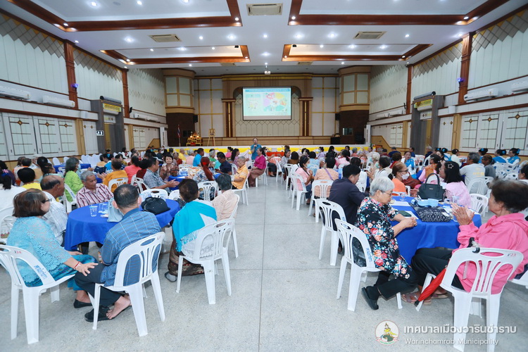 วันที่ 17 กรกฎาคม 2568 เวลา 09.00 น. กองสาธารณสุขและสิ่งแวดล้อม เทศบาลเมืองวารินชำราบ ได้จัดการอบรมโครงการส่งเสริมสุขภาพผู้สูงวัย ชะลอสูงวัย ชีวายืนยาว ประจำปี 2568 โดยมีนายจีระชัย ไกรกังวาร นายกเทศมนตรี เป็นประธานในพิธีเปิดโครงการ ฯ พร้อมด้วยสมาชิกสภาเทศบาล และหัวหน้าส่วนราชการ ณ หอประชุมประชาวาริน ซึ่งการอบรมในครั้งนี้ เป็นการส่งเสริมความรู้ให้แก่ตัวแทนผู้สูงอายุในชุมชนทั้ง 28 ชุมชน และกิจกรรมนันทนาการ แลกเปลี่ยนเรียนรู้ซึ่งกันและกัน โดยได้รับเกียรติจาก นางวรรณภา อินต๊ะราชา ตำแหน่ง พยาบาลวิชาชีพชำนาญการ จากศูนย์อนามัยที่ 10 อุบลราชธานี และนางสาวเดือนธิดา ศรีเสมอ ตำแหน่ง พยาบาลวิชาชีพชำนาญการ จากศูนย์อนามัยที่ 10 อุบลราชธานีแก่เข้ารับการอบรมครั้งนี้