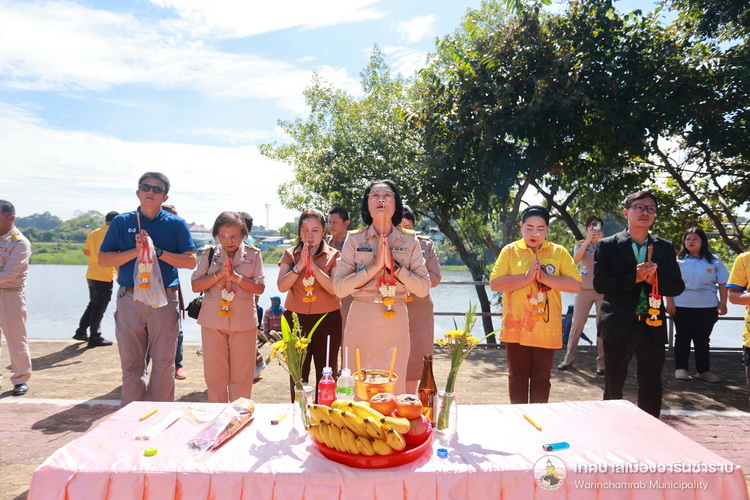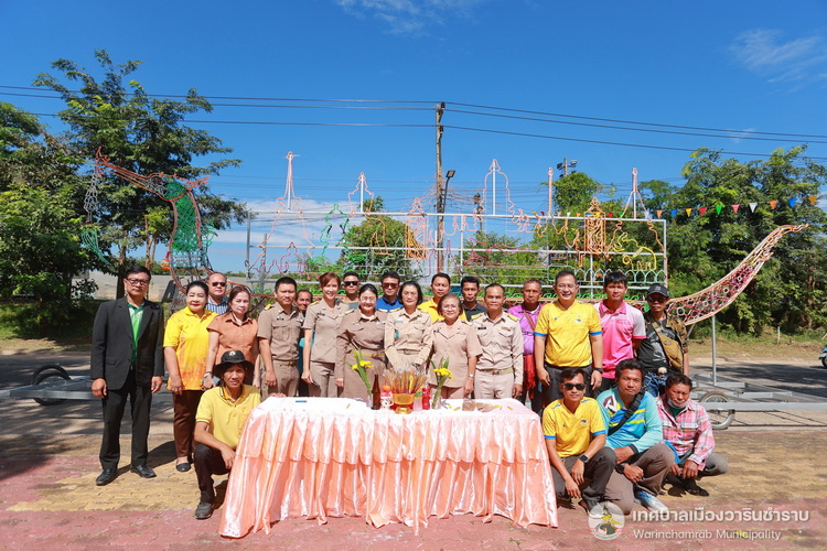 วันที่ 13 พฤศจิกายน 2567 เวลา 10.00 น. บริเวณสวนสาธารณะกุดปลาขาว นางรุ่งนภา ทับหนองฮี หัวหน้าสำนักปลัดเทศบาล รักษาราชการแทนปลัดเทศบาล หัวหน้าส่วนราชการ ลงพื้นที่ตรวจเยี่ยมการปฏิบัติหน้าที่ และบวงสรวงเรือประดับไฟรูป “เรือสุพรรณหงส์” ในงานประเพณีวันลอยกระทง ประจำปี 2567 (ขึ้น 15 ค่ำ เดือน 12) ตรงกับวันศุกร์ที่ 15 พฤศจิกายน 2567 เพื่อสนับสนุนการท่องเที่ยวของเทศบาลเมืองวารินชำราบ และดึงดูดนักท่องเที่ยวทั้งชาวไทยและชาวต่างชาติให้มาเที่ยวชมวัฒนธรรมประเพณีของไทยที่สืบทอดกันมายาวนาน