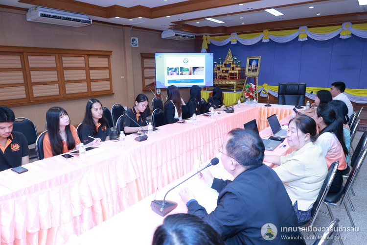 วันที่ 17 กรกฎาคม 2568 เวลา 14.00 น. นางพฤกษา ตั้งกิจวนิชกุล ผู้อำนวยการกองสาธารณสุขและสิ่งแวดล้อม พร้อมด้วยเจ้าหน้าที่ที่เกี่ยวข้อง ได้เข้าให้ข้อมูลแก่ นักศึกษาชั้นปีที่ 4 คณะรัฐศาสตร์ มหาวิทยาลัยอุบลราชธานี ในเรื่องยโยบายและการบริหารจัดการสาธารณะของเทศบาลเมืองวารินชำราบ เพื่อเป็นการแลกเปลี่ยนความคิดเห็นและข้อเสนอแนะในการสำรวจและวิเคราะห์ประเด็นเกี่ยวกับกิจการสาธารณะ ซึ่งเป็นส่วนหนึ่งของการศึกษาในรายวิชาสัมมนารัฐประศาสนศาสตร์ ณ ห้องประชุมประทุมเทพภักดี 1 เทศบาลเมืองวารินชำราบ
