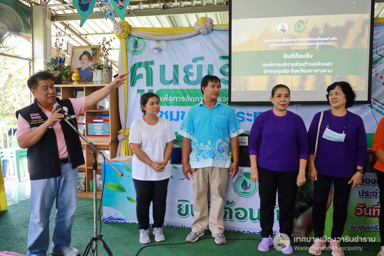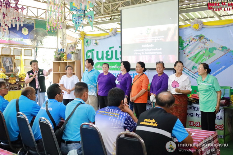 วันที่ 18 กรกฎาคม 2568 เวลา 13.30 น. ณ ศูนย์เรียนรู้เพื่อการจัดการสิ่งแวดล้อมอย่างยั่งยืน ชุมชนชลประทาน ผศ.ดร.อนุชา เพียรชนะ ผู้จัดการศูนย์ถ่ายทอดเทคโนโลยีโครงการศึกษาวิจัยและพัฒนาสิ่งแวดล้อมแหลมผักเบี้ย ภาคตะวันออกเฉียงเหนือ พร้อมด้วยนายประสิทธิ์ สุทธิพันธุ์ ประธานชุมชนชลประทาน และคณะทำงานศูนย์การเรียนรู้ฯ ชุมชนชลประทาน ให้การต้อนรับคณะผู้บริหาร สมาชิกสภาองค์การบริหารส่วนตำบล หัวหน้าส่วนราชการ และพนักงาน จากองค์การบริหารส่วนตำบลเลิงแฝก อำเภอกุดรัง จังหวัดมหาสารคาม นำโดย นายโชคชัย แก้วไชย นายกองค์การบริหารส่วนตำบลเลิงแฝก ในการศึกษาดูงานด้านการบริหารจัดการขยะภายในชุมชนของชุมชนชลประทาน ซึ่งเป็นชุมชนต้นแบบในเขตเทศบาลเมืองวารินชำราบที่ประสบความสำเร็จในการลดปริมาณขยะภายในชุมชน ภายใต้การทำกิจกรรมโครงการชุมชนปลอดขยะ Zero Waste ด้วยการนำขยะมารีไซเคิลผลิตเป็นสิ่งของเครื่องใช้ต่างๆ อาทิ ถังขยะลดโลกร้อน,ไม้กวาดจากขวดพลาสติก, เสื่อจากถุงพลาสติก, ผ้ากันเปื้อนจากป้ายไวนิล, เตาชีวมวลจากหม้อหุงข้าวที่ไม่ใช้แล้ว เป็นต้น