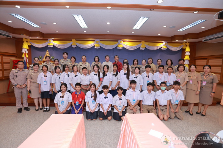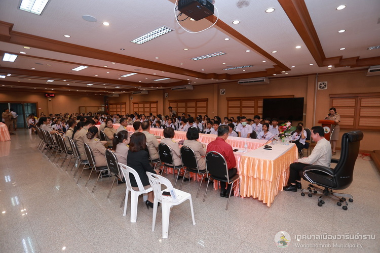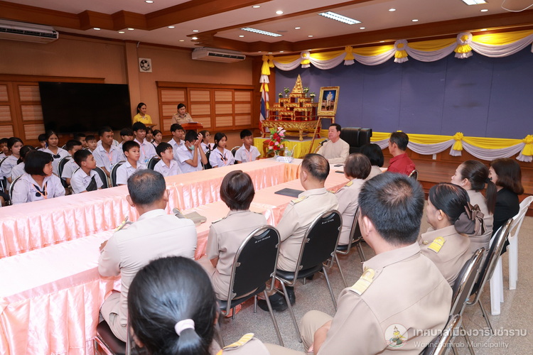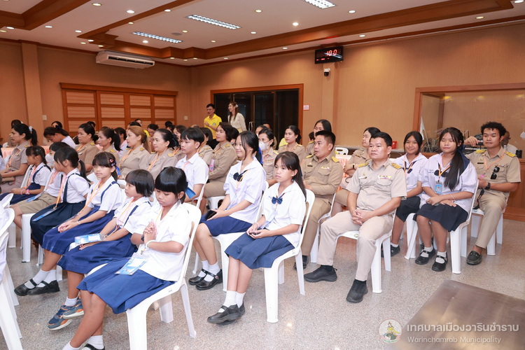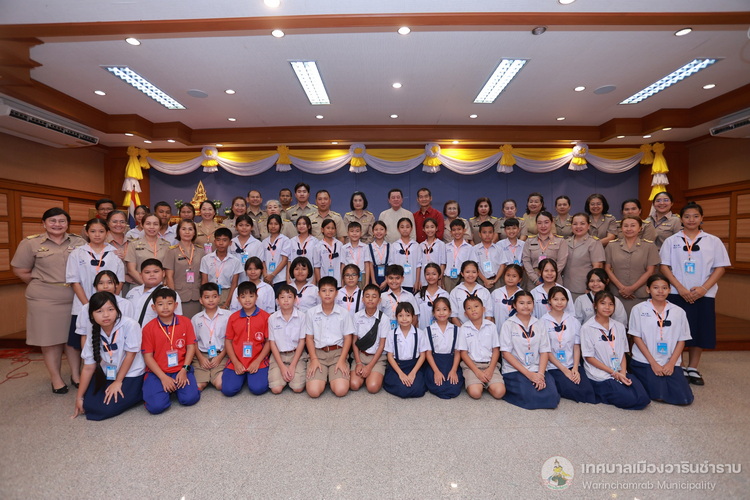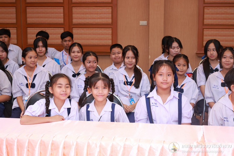 วันที่ 21 กรกฎาคม 2568 เวลา 14.00 น. ณ ห้องประชุมประทุมเทพภักดี 1 เทศบาลเมืองวารินชำราบ คณะผู้บริหารสถานศึกษา และครูผู้ฝึกสอน ได้นำนักเรียนจากโรงเรียนในสังกัดเทศบาลเมืองวารินชำราบ เข้าพบและรับฟังโอวาทจากนายจีระชัย ไกรกังวาร นายกเทศมนตรีเมืองวารินชำราบ เนื่องในโอกาสที่นักเรียนจะเดินทางไปร่วมการแข่งขันทักษะทางวิชาการและงานมหกรรมการศึกษาท้องถิ่น ระดับภาคตะวันออกเฉียงเหนือ ครั้งที่ 30 ประจำปี 2568 ที่จังหวัดร้อยเอ็ด ในระหว่างวันที่ 22 - 25 กรกฎาคม 2568 เพื่อเป็นขวัญและกำลังใจในการทำหน้าที่ตัวแทนของเทศบาลเมืองวารินชำราบให้เต็มความสามารถ