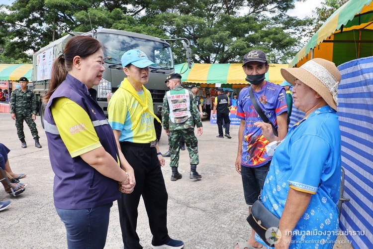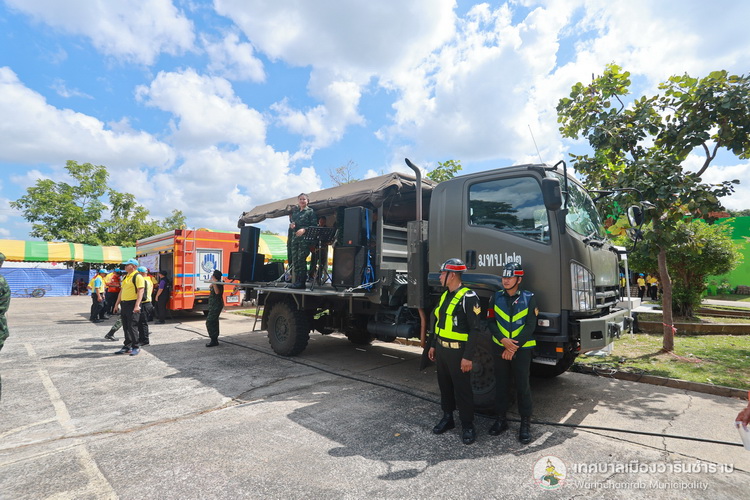 วันที่ 14 พฤศจิกายน 2567 เวลา 09.00 น. ณ โครงการปรับปรุงคุณภาพน้ำ เทศบาลเมืองวารินชำราบ นำโดยนายจีระชัย ไกรกังวาร นายกเทศมนตรีเมืองวารินชำราบ พร้อมด้วย รองนายกเทศมนตรี หัวหน้าส่วนการงาน และเจ้าหน้าที่เทศบาลเมืองวารินชำราบ ร่วมให้การต้อนรับ พล.ท.บุญสิน พาดกลาง แม่ทัพภาคที่ 2 ในฐานะผู้อำนวยการศูนย์จิตอาสาพระราชทาน ภาค 2 ในการตรวจเยี่ยมและร่วมฝึกซ้อมการป้องกันและบรรเทาสาธารณภัย แบบบูรณาการระดับจังหวัด กรณีอุทกภัย โดยมีส่วนราชการระดับจังหวัด มณฑลทหารบกที่ 22 ส่วนท้องถิ่น และภาคีเครือข่ายร่วมฝึกซ้อมในสถานการณ์ต่างๆ ที่อาจจะเกิดขึ้นได้ ทั้งส่วนของการป้องกันก่อนเกิดอุทกภัย การเตรียมความพร้อมในการรับมือและรองรับสถานการณ์ รวมถึงการเผชิญเหตุในการช่วยเหลืออพยพประชาชน ให้มีความปลอดภัยทั้งผู้ที่เข้าช่วยเหลือและผู้ขอรับความช่วยเหลือ ไม่ให้เกิดความเสียหายในชีวิตและทรัพย์สิน นอกจากนี้ ได้เตรียมความพร้อมในการจัดกำลังของจิตอาสาฯ ในประเภทต่างๆ ตามความสามารถ ความเหมาะสม ความเชี่ยวชาญ เพื่อร่วมปฏิบัติการป้องกันและบรรเทาสาธารณภัยอีกด้วย ทั้งนี้ คณะสังเกตการณ์ได้เยี่ยมชมการจัดการศูนย์พักพิง กรณีเกิดอุทกภัย ตั้งแต่การลงทะเบียนรับผู้ประสบภัยเข้าสู่ศูนย์ การให้ความช่วยเหลือในด้านต่างๆ การปฐมพยาบาลเบื้องต้น บริการตัดผม บริการน้ำดื่มสะอาด โรงครัวพระราชทาน เครื่องมือเครื่องจักรที่ใช้ในการเข้าช่วยเหลือผู้ประสบภัย การแสดงดนตรีเพื่อผ่อนคลายความเครียดในศูนย์พักพิงแก่ผู้ประสบภัย ตลอดจนให้ความช่วยเหลือซ่อมแซมรถจักรยานยนต์ เครื่องใช้ไฟฟ้า การฟื้นฟูสภาพบ้านเรือนภายหลังเหตุอุทกภัย โดยแม่ทัพภาคที่ 2 ได้กล่าวชื่นชมความสำเร็จในการบริหารจัดการภัยพิบัติของจังหวัดอุบลราชธานี ซึ่งมีการเตรียมความพร้อมเป็นอย่างดีอีกด้วย