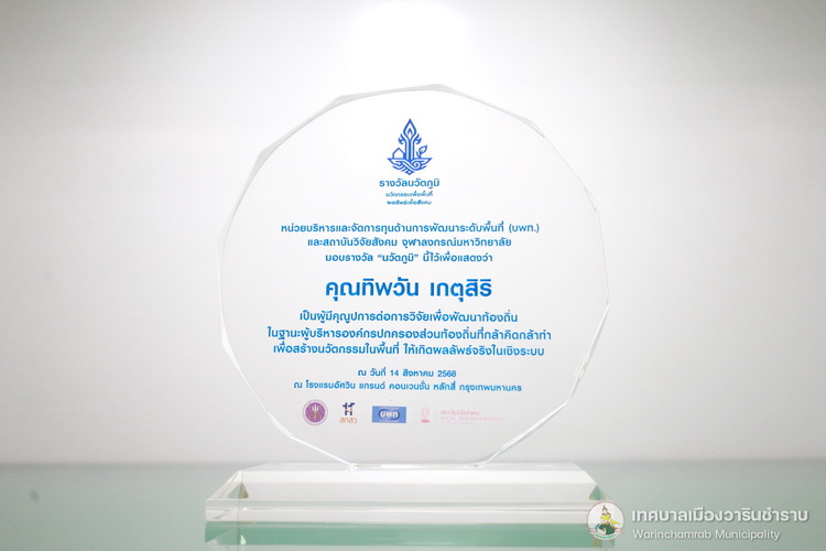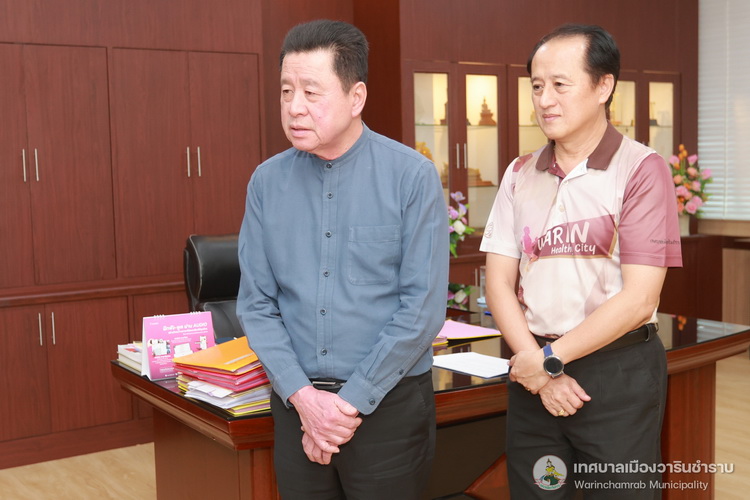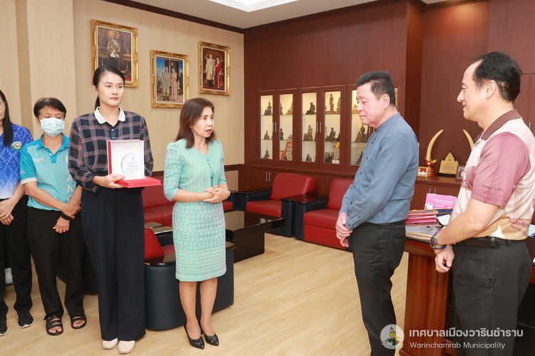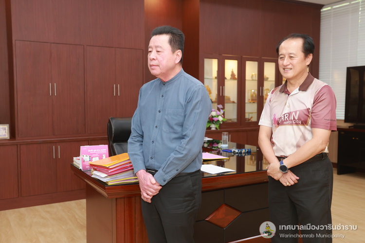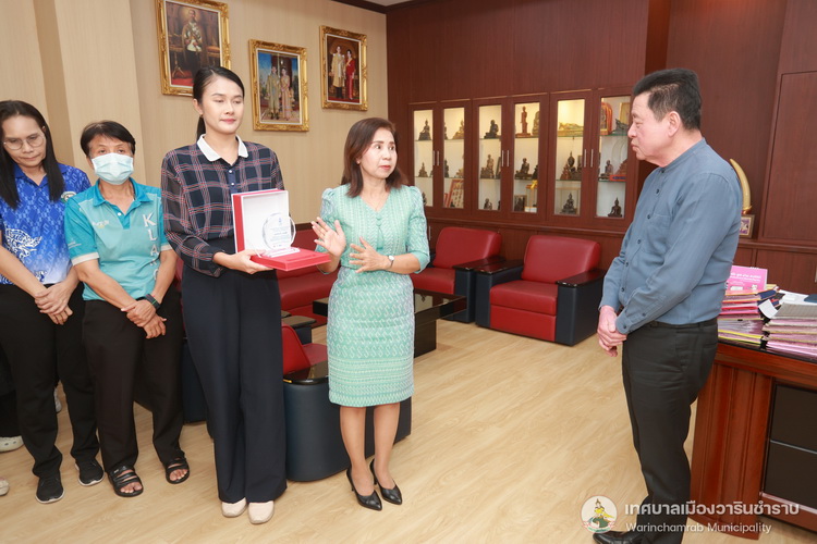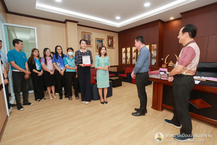 วันที่ 15 สิงหาคม 2568 เวลา 11.00 น. ณ ห้องทำงานคณะผู้บริหารเทศบาลเมืองวารินชำราบ นางทิพวัน เกตุสิริ ผู้อำนวยการกองคลัง ได้นำเจ้าหน้าที่กองคลัง เข้าพบนายจีระชัย ไกรกังวาร นายกเทศมนตรีเมืองวารินชำราบ พร้อมด้วยนายณรงชัย ประสิทธิ์ภูริปรีชา รองนายกเทศมนตรี ได้รับโล่รางวัลยกย่องเกียรติคุณผู้มีคุณูปการต่อการวิจัยเพื่อพัฒนาท้องถิ่นไทย และเวทีสาธารณะ “ มองอนาคตการวิจัยเพื่อพัฒนารายได้สำหรับองค์กรปกครองส่วนท้องถิ่น ” รางวัลเกียรติคุณ “นวัตภูมิ” แก่ผู้มีคุณูปการต่อการวิจัย มาแสดงความขอบคุณ และรับโอวาท เพื่อเป็นแนวทางในการดำเนินการต่อไป