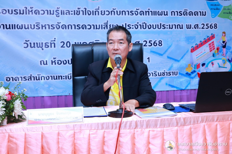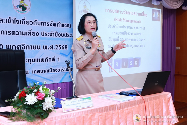 วันที่ 20 พฤศจิกายน 2567 เวลา 09.00 น. นายจีระชัย ไกรกังวาร นายกเทศมนตรีเมืองวารินชำราบ ได้มอบหมายให้นายบุญยง จินตนะกุล รองนายกเทศมนตรี เป็นประธานในการเปิดโครงการฝึกอบรมโครงการอบรมให้ความรู้และความเข้าใจเกี่ยวกับการจัดทำแผน การติดตามและการรายงานแผนบริหารจัดการความเสี่ยง ประจำปีงบประมาณ พ.ศ. 2568 ซึ่งการอบรมฯในครั้งนี้ได้รับเกียรติจาก นางรุ่งนภา ทับหนองฮี หัวหน้าสำนักปลัดเทศบาล รักษาราชการแทนปลัดเทศบาล มาเป็นวิทยากรให้ความรู้ในเรื่อง และความเข้าใจเกี่ยวกับการจัดทำแผนการติดตามและการรายงานแผนบริหารจัดการความเสี่ยง ประจำปีงบประมาณ พ.ศ. 2568 ตามพระราชบัญญัติวินัยการเงินการคลังของรัฐ พ.ศ. 2561 มาตรา 79 กำหนดให้หน่วยงานของรัฐจัดให้มีการตรวจสอบภายใน การควบคุมภายใน และการบริหารจัดการความเสี่ยงโดยให้ถือปฏิบัติตามประกาศมาตรฐานและหลักเกณฑ์ที่กระทรวงการคลังกำหนด เพื่อให้ผู้เข้ารับการฝึกอบรมมีความรู้ความเข้าใจ ในขั้นตอน วิธีการบริหารจัดการความเสี่ยง ตามแบบ บส. 1 - บส. 5 ได้อย่างถูกต้อง และเกิดประสิทธิภาพในการบริหารจัดการความเสี่ยงของเทศบาลเมืองวารินชำราบ