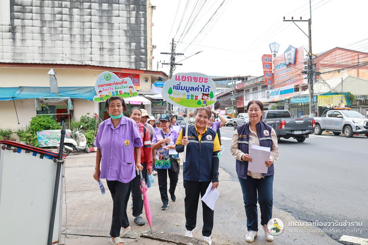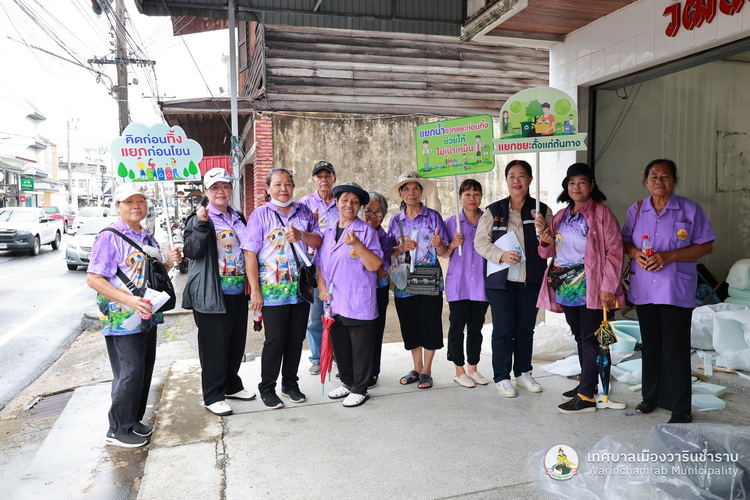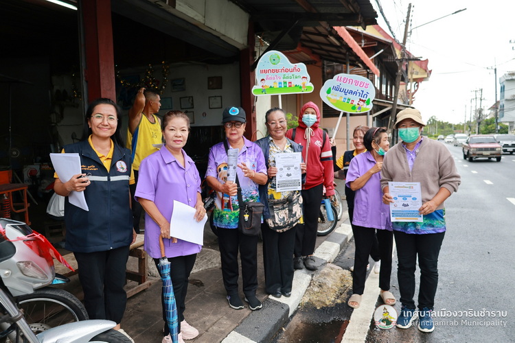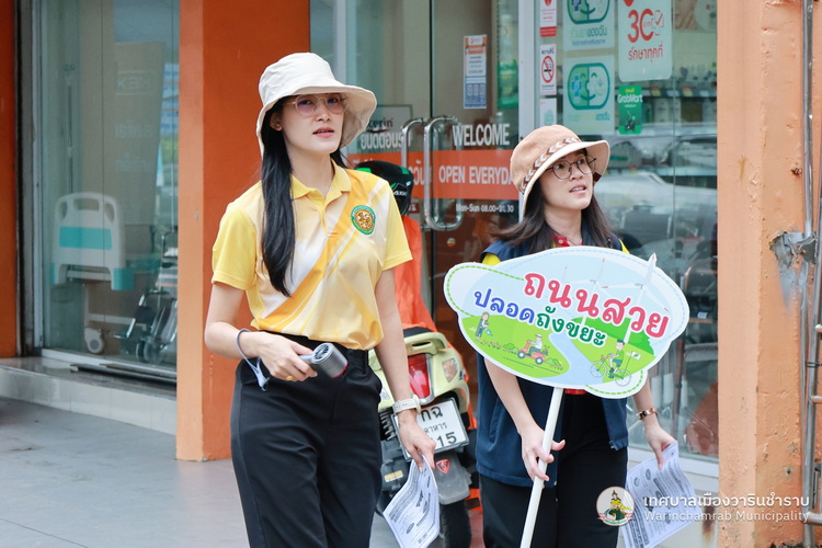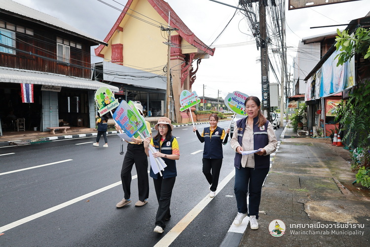 วันที่ 8 กันยายน 2568 เวลา 15.00 น. นางพฤกษา ตั้งกิจวนิชกุล ผู้อำนวยการกองสาธาณณสุขและสิ่งแวดล้อม นำเจ้าหน้าที่กองสาธารณสุขฯ และสมาชิกอาสาสมัครท้องถิ่นรักษ์โลก (อถล.) เทศบาลเมืองวารินชำราบ ลงพื้นที่ประชาสัมพันธ์โครงการถนนปลอดถังขยะ แบบเคาะประตูบ้าน ในพื้นที่นำร่องโครงการฯ ได้แก่ ถนนสถิตย์นิมานกาล และถนนกันทรลักษ์ เพื่อเป็นการประชาสัมพันธ์ชี้แจงให้ประชาชนที่อาศัย หรือประกอบกิจการในบริเวณดังกล่าวได้รับทราบถึงวัตถุประสงค์ของโครงการฯ รวมถึงเพื่อสร้างความเข้าใจแก่ประชาชนในขั้นตอนการทิ้งขยะ และการจัดเก็บขยะของเทศบาล