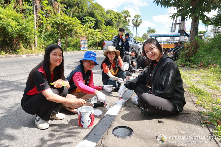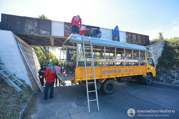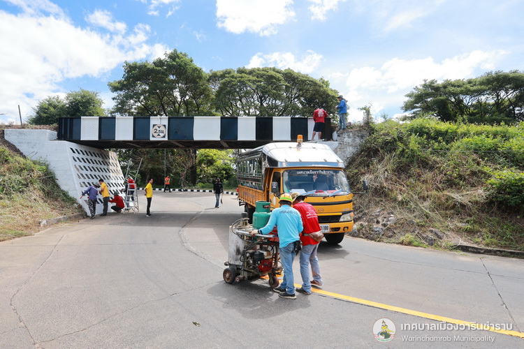 วันที่ 21 พฤศจิกายน 2567 เวลา 09.00 น. เทศบาลเมืองวารินชำราบ นำโดยนายณรงชัย ประสิทธิ์ภูริปรีชา รองนายกเทศมนตรี พร้อมด้วยนางพฤกษา ตั้งกิจวนิชกุล ผู้อำนวยการกองสาธารณสุขและสิ่งแวดล้อม ,นายสัมพันธ์ ศิริปักมานนท์ ผู้อำนวยการกองช่าง พร้อมด้วยภาคีเครือข่าย ได้แก่ ที่ทำการปกครองอำเภอวารินชำราบ, สถานีตำรวจภูธรวารินชำราบ, สถานีรถไฟอุบลราชธานี ได้ร่วมลงพื้นที่ทาสีจราจร และปรับปรุงทัศนวิสัยที่ก่อให้เกิดจุดเสี่ยงอุบัติเหตุ บริเวณสะพานดำ เทศบาลเมืองวารินชำราบ
