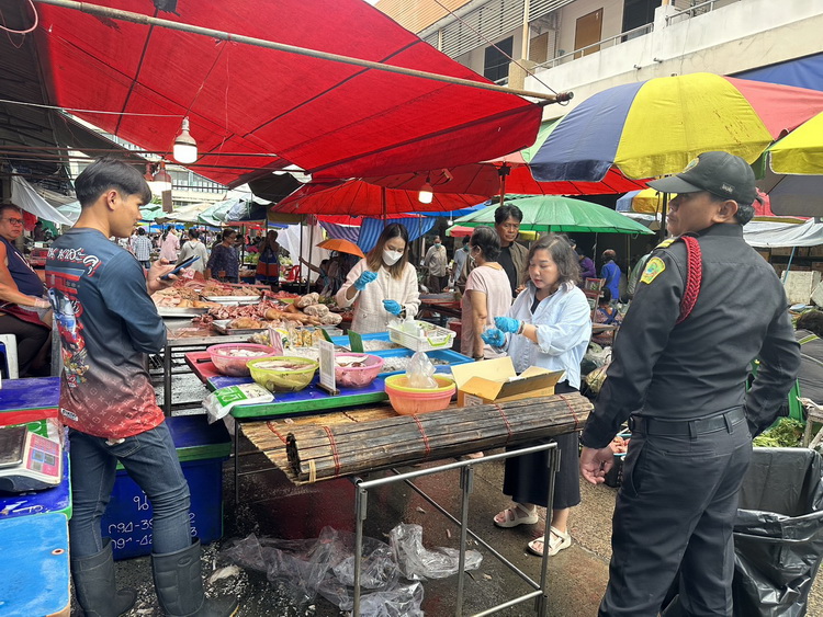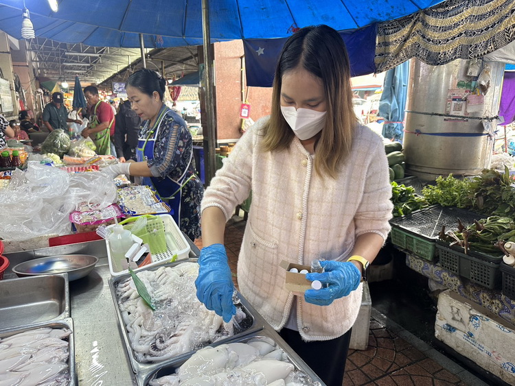 เมื่อวันที่ 19 กันยายน 2568 เวลา 08.00 น. งานสุขาภิบาลและอนามัยสิ่งแวดล้อม กองสาธารณสุขและสิ่งแวดล้อม เทศบาลเมืองวารินชำราบ นำโดยนางสาวศิริมาส สิทธิโชค นักวิชาการสุขาภิบาลปฏิบัติการ , นางสาวชนัญญา ศุภลักษณ์ นักวิชาการสุขาภิบาลปฏิบัติการ และเจ้าหน้าที่เทศกิจ ดำเนินการออกตรวจเฝ้าระวังการใส่สารฟอร์มาลินในอาหารทะเล เพื่อเป็นการเฝ้าระวังและตรวจสอบคุณภาพความปลอดภัยของอาหารและร้านจำหน่ายอาหารทะเลสด ภายในตลาดสดเทศบาลแห่งที่ 1 เทศบาลเมืองวารินชำราบ