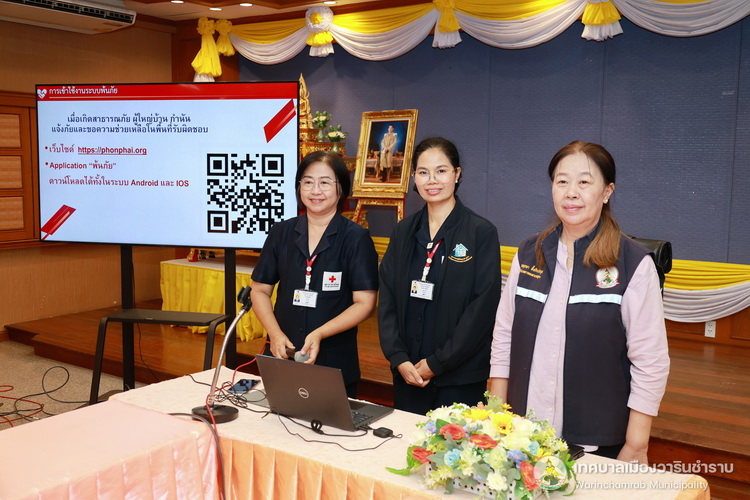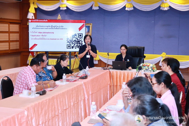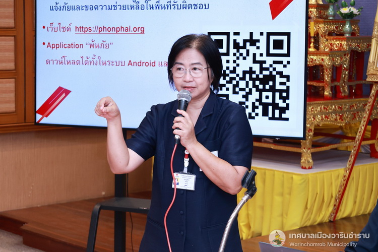 วันที่ 3 ตุลาคม 2568 เวลา 13.30 น. ณ หอประชุมประทุมเทพภักดี 1กองสาธารณสุขและสิ่งแวดล้อม เทศบาลเมืองวารินชำราบ นำโดยนางพฤกษา ตั้งกิจวนิชกุล ผู้อำนวยการกองสาธารณสุขและสิ่งแวดล้อม ร่วมกับนางกุลธิดา ผิวผัน ผู้ช่วยหัวหน้าสถานีกาชาดที่ 7 จังหวัดอุบลราชธานีพร้อมคณะ จัดอบรมให้ความรู้การพัฒนา ขับเคลื่อนและบูรณาการการช่วยเหลือผู้ประสบภัย ผ่านแอปพลิเคชัน "พ้นภัย" เป็นเครื่องมือแจ้งเหตุและขอความช่วยเหลือสำหรับผู้ประสบภัยพิบัติ