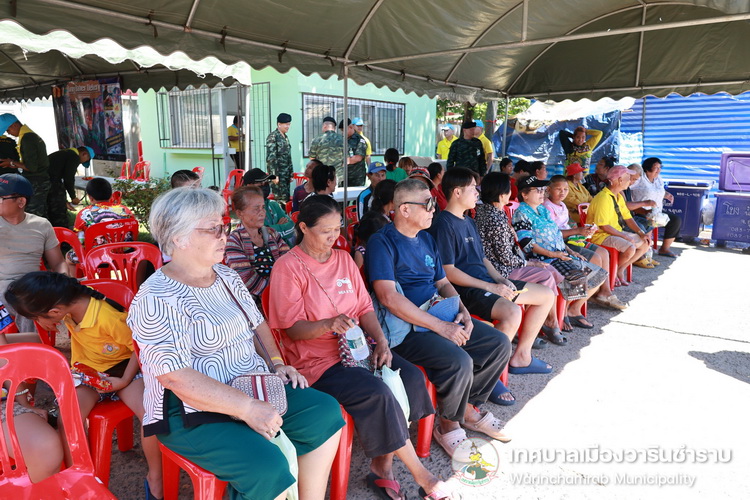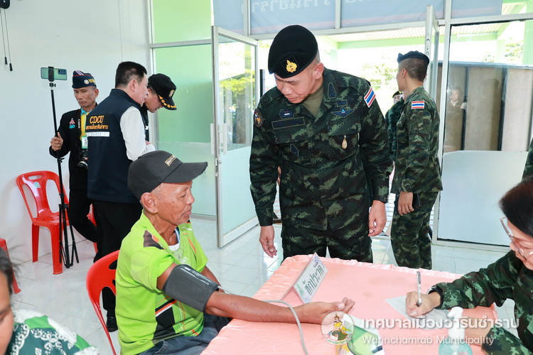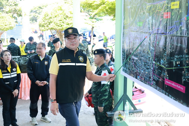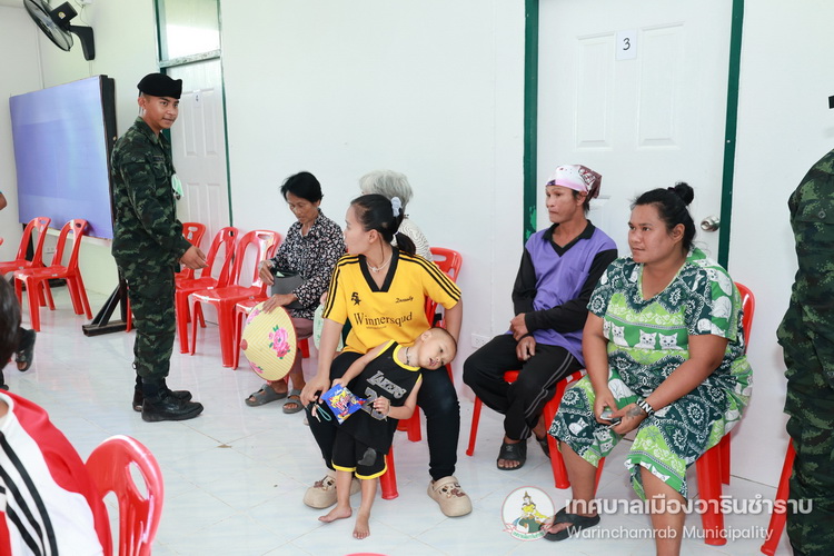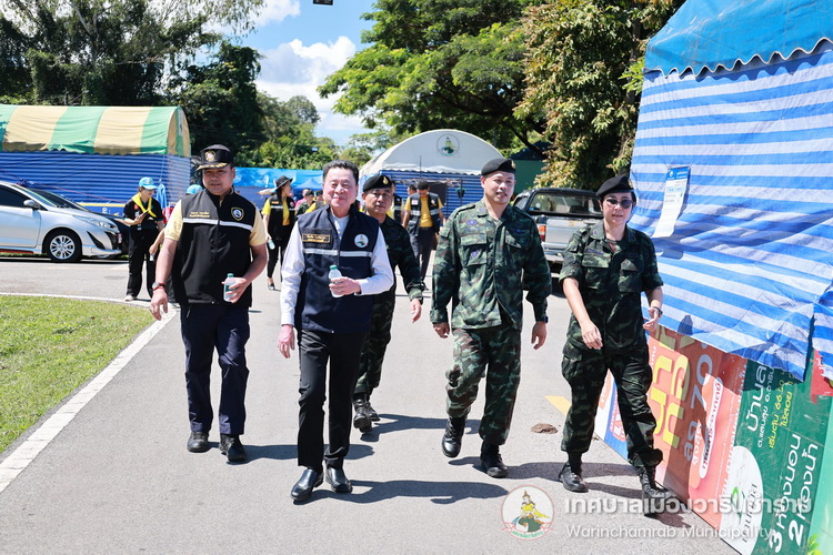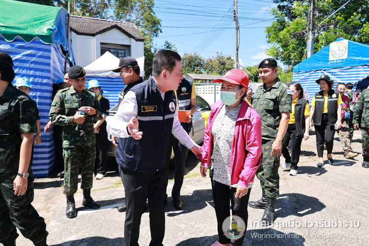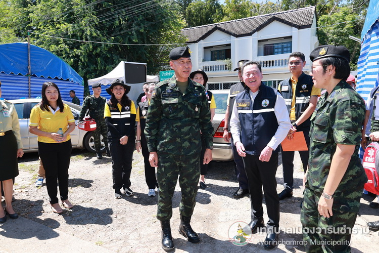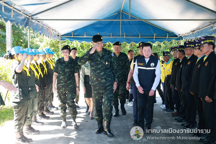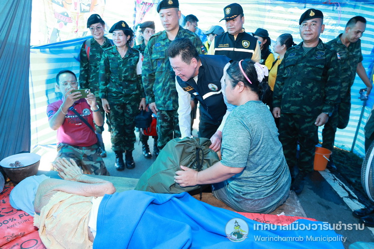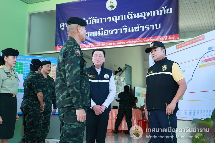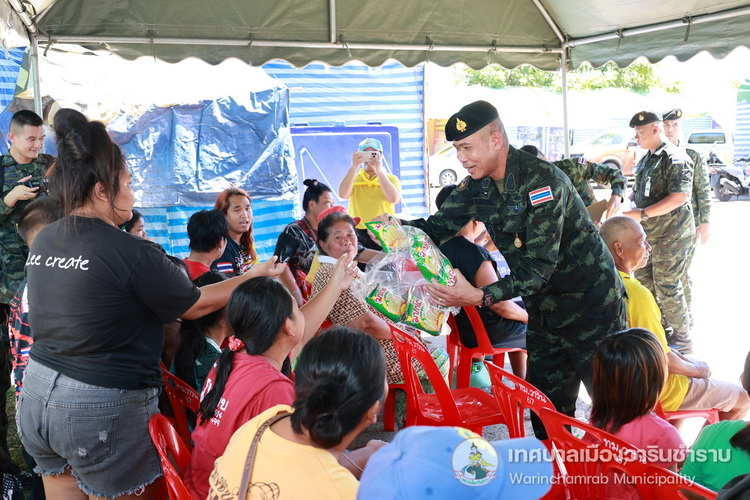 วันที่ 10 ตุลาคม 2568 เวลา 10.00 น. ณ ศูนย์ปฏิบัติการฉุกเฉินอุทกภัย โครงการปรับปรุงคุณภาพน้ำ เทศบาลเมืองวารินชำราบ นำโดยนายจีระชัย ไกรกังวาร นายกเทศมนตรีเมืองวารินชำราบ และหัวหน้าส่วนราชการ ให้การต้อนรับพล.ต.ธนกฤต พันธุ์รอด ผบ.มทบ.22 และคณะ ซึ่งได้เดินทางมาตรวจเยี่ยมให้กำลังใจผู้ประสบอุทกภัย ภายในศูนย์พักพิงชั่วคราวโครงการปรับปรุงคุณภาพน้ำ พร้อมทั้งจัดชุดแพทย์เคลื่อนที่หมอเดินเท้า ชุดช่างตัดผม ดนตรีสร้างสุข และจัดสิ่งอุปโภคบริโภค มามอบให้ประชาชนผู้ประสบอุทกภัย จำนวน 51 ชุด เพื่อเป็นการบรรเทาความเดือดร้อน และให้กำลังใจแก่ผู้ประสบอุทกภัย