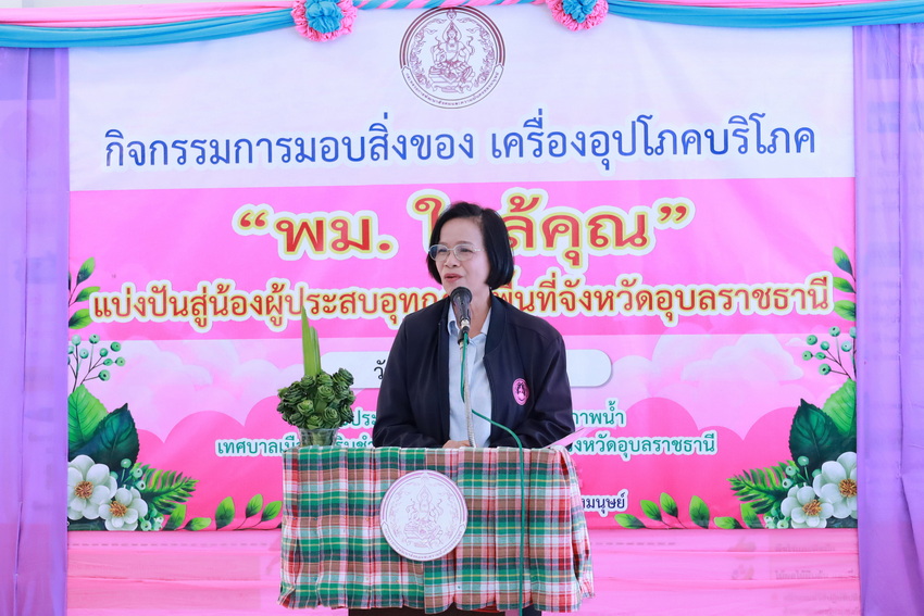 วันที่ 19 ตุลาคม 2568 เวลา 13.30 น. นายจีระชัย ไกรกังวาร นายกเทศมนตรีเมืองวารินชำราบ ได้มอบหมายให้ นายณรงชัย ประสิทธิ์ภูริปรีชา รองนายกเทศมนตรี พร้อมด้วย นางรุ่งนภา ทับหนองฮี รองปลัดเทศบาล รักษาราชการแทนปลัดเทศบาล หัวหน้าส่วนการงาน และพนักงานเทศบาลเมืองวารินชำราบ ให้การต้อนรับ นางอภิญญา ชมภูมาศ อธิบดีกรมกิจการเด็กและเยาวชน, ร้อยตรี สรมงคล มงคละสิริ รองผู้ว่าราชการจังหวัดอุบลราชธานี, นายวิศิษฐ์ ผลดก พัฒนาสังคมและความมั่นคงของมนุษย์จังหวัดอุบลราชธานี และคณะ ซึ่งได้นำสิ่งของเครื่องอุปโภคบริโภค "พม.ใกล้คุณ" แบ่งปันสู่น้องผู้ประสบอุทกภัย มามอบให้แก่ผู้ประสบภัยน้ำท่วมในพื้นที่เทศบาลเมืองวารินชำราบ ณ ห้องประชุมโครงการปรับปรุงคุณภาพน้ำเทศบาลเมืองวารินชำราบ เพื่อเป็นการบรรเทาความเดือดร้อน และส่งต่อกำลังใจให้กับผู้ประสบภัย พร้อมกันนี้ นางอภิญญา ชมภูมาศ อธิบดีกรมกิจการเด็กและเยาวชน และร้อยตรี สรมงคล มงคละสิริ รองผู้ว่าราชการจังหวัดอุบลราชธานี ยังได้เข้าเยี่ยมครอบครัวผู้ประสบภัย ที่ได้อพยพมาพักอาศัยชั่วคราว ณ ศูนย์พักพิงชั่วคราวโครงการปรับปรุงคุณภาพน้ำด้วย