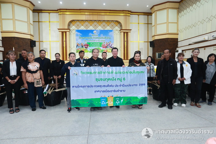 วันที่ 3 ธันวาคม 2568 เวลา 09.00 น. ณ หอประชุมประชาวาริน นายจีระชัย ไกรกังวาร นายกเทศมนตรีเมืองวารินชำราบ มาเป็นประธานในพิธีเปิดโครงการพร้อมมอบนโยบาย และอุปกรณ์ทำความสะอาดให้แก่ชุมชนต่างๆ ร่วมกับสมาชิกสภาเทศบาล และหัวหน้าส่วนการงาน ซึ่งโครงการประกวดชุมชนดีเด่นในการรักษาความสะอาด และพัฒนาคุณภาพชีวิตของประชาชน ประจำปี 2569 เพื่อเป็นการส่งเสริมให้กลุ่มพลังมวลชน และอาสาสมัครของเทศบาลเมืองวารินชำราบ ได้มีส่วนร่วมในการดูแลรักษาความสะอาด และความเป็นระเบียบของบ้านเมือง รวมถึงยังเป็นการพัฒนาคุณภาพชีวิตของประชาชนให้ดีขึ้นในด้านสุขภาพ คุณภาพสังคม และสิ่งแวดล้อม ตามนโยบายวารินเมืองน่าอยู่ ผู้คนน่ารัก ซึ่งกิจกรรมในโครงการจะเป็นการอบรมให้ความรู้ในการประกวดชุมชนดีเด่นในด้านต่างๆ 4 ด้าน กิจกรรมรณรงค์ทำความสะอาดชุมชนทั้ง 28 ชุมชน และกิจกรรมมอบใบประกาศเกียรติคุณแก่ชุมชนที่ได้รับรางวัลประกวดชุมชนดีเด่น ซึ่งการอบรมในครั้งนี้ได้รับเกียรติจากนายอนุสรณ์ ส่องแสง พยาบาลวิชาชีพชำนาญการ ศูนย์อนามัยที่ 10 อุบลราชธานี มาเป็นวิทยากรให้ความรู้ในครั้งนี้