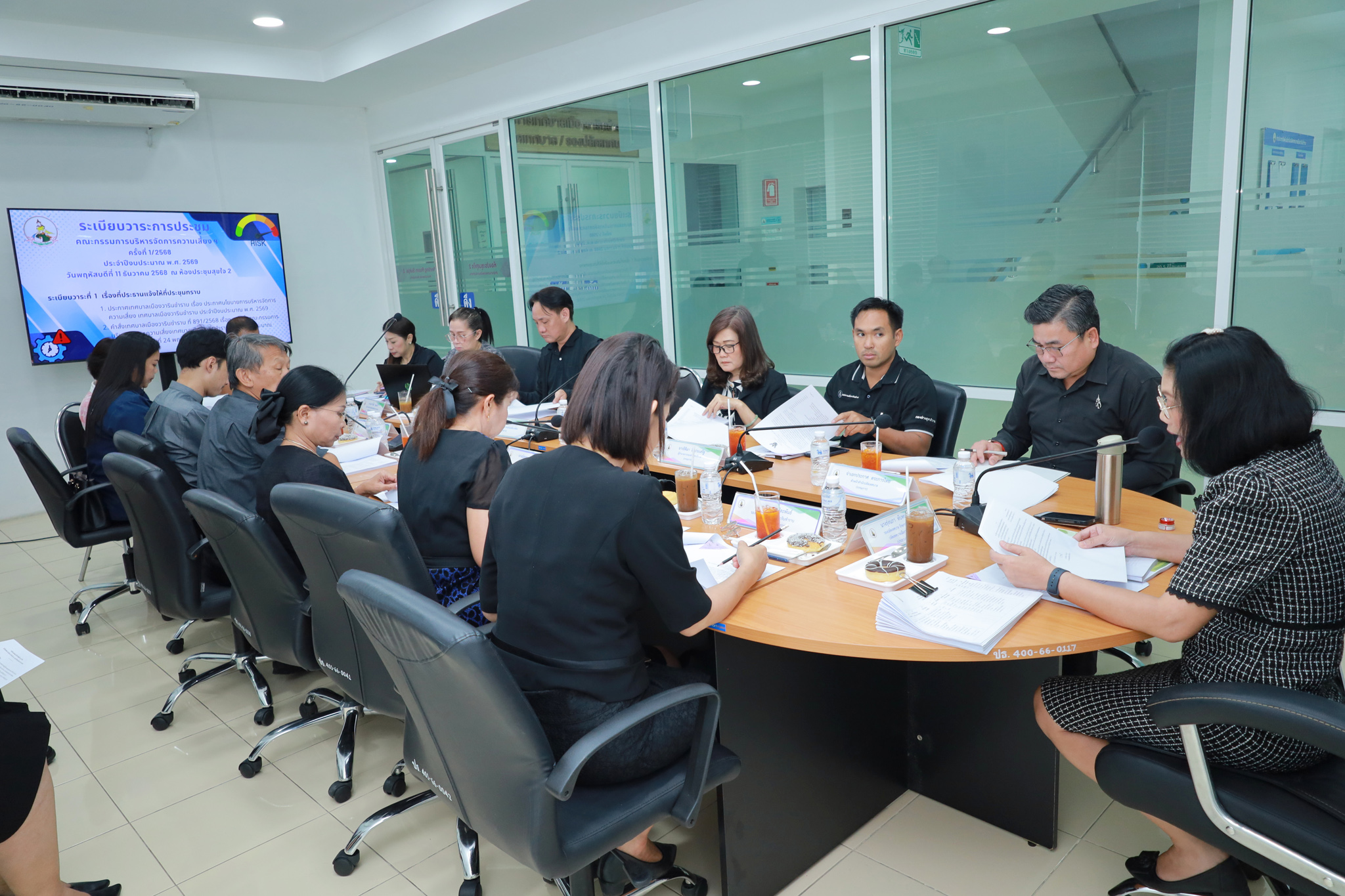 วันที่ 11 ธันวาคม 2568 เวลา 13.30 น. เทศบาลเมืองวารินชำราบ ได้ดำเนินการประชุมคณะกรรมการบริหารจัดการความเสี่ยงเทศบาลเมืองวารินชำราบ ประจำปีงบประมาณ พ.ศ. 2569 ครั้งที่ 1/2568 โดยมีนางรุ่งนภา ทับหนองฮี รองปลัดเทศบาล รักษาราชการแทนปลัดเทศบาล เป็นประธานในการประชุม ณ ห้องประชุมสุขใจ 2 สำนักงานเทศบาลเมืองวารินชำราบ ซึ่งการประชุมคร้งนี้ มีเรื่องที่ประธานแจ้งให้ทราบ ได้แก่ นโยบายการบริหารจัดการความเสี่ยงเทศบาลเมืองวารินชำราบ ประจำปีงบประมาณ พ.ศ. 2569 และคำสั่งแต่งตั้งคณะกรรมการบริหารจัดการความเสี่ยงเทศบาลเมืองวารินชำราบ ประจำปีงบประมาณ พ.ศ. 2569 และมีเรื่องพิจารณา ได้แก่ ร่างคู่มือการบริหารจัดการความเสี่ยงเทศบาลเมืองวารินชำราบ ประจำปีงบประมาณ พ.ศ. 2569 และร่างคำสั่งคณะทำงานบริหารจัดการความเสี่ยงเทศบาลเมืองวารินชำราบ ประจำปีงบประมาณ พ.ศ. 2569
