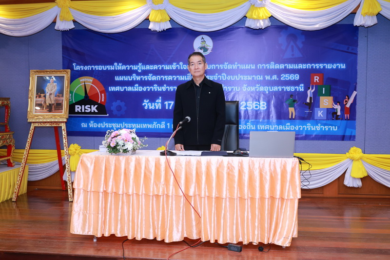 วันที่ 17 ธันวาคม 2568 เวลา 09.00 น. นายจีระชัย ไกรกังวาร นายกเทศมนตรีเมืองวารินชำราบ ได้มอบหมายให้นายบุญยง จินตนะกุล รองนายกเทศมนตรี เป็นประธานในการเปิดโครงการอบรมให้ความรู้และความเข้าใจเกี่ยวกับการจัดทำแผน การติดตามและการรายงานแผนบริหารจัดการความเสี่ยง ประจำปีงบประมาณ พ.ศ. 2569 ซึ่งการอบรมฯในครั้งนี้ได้รับเกียรติจาก นางรุ่งนภา ทับหนองฮี รองปลัดเทศบาล รักษาราชการแทนปลัดเทศบาล มาเป็นวิทยากรให้ความรู้ในเรื่อง และความเข้าใจ ตามพระราชบัญญัติวินัยการเงินการคลังของรัฐ พ.ศ. 2561 มาตรา 79 กำหนดให้หน่วยงานของรัฐจัดให้มีการตรวจสอบภายใน การควบคุมภายใน และการบริหารจัดการความเสี่ยงโดยให้ถือปฏิบัติตามประกาศมาตรฐานและหลักเกณฑ์ที่กระทรวงการคลังกำหนด เพื่อให้ผู้เข้ารับการฝึกอบรมมีความรู้ความเข้าใจ ในขั้นตอน วิธีการบริหารจัดการความเสี่ยง ตามแบบ บส. 1 - บส. 5 ได้อย่างถูกต้อง และเกิดประสิทธิภาพในการบริหารจัดการความเสี่ยงของเทศบาลเมืองวารินชำราบ