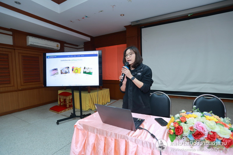 วันที่ 8 มกราคม 2569 เวลา 09.00 น. ณ ห้องประชุมประทุมเทพภักดี 2 กองสวัสดิการสังคม เทศบาลเมืองวารินชำราบ ได้จัดกิจกรรมโครงการส่งเสริมและสนับสนุนการจำหน่ายสินค้าชุมชน ประจำปี 2569 เพื่อสร้างความเข้มแข็งในอาชีพ การแลกเปลี่ยนประสบการณ์ ความรู้ ทักษะในการประกอบอาชีพ และส่งเสริมกลุ่มอาชีพในท้องถิ่น โดยการจัดฝึกอบรมให้ความรู้ การสร้างเพจ Facebook และสร้าง Tiktok เพื่อขายสินค้าออนไลน์ ยกระดับการจำหน่ายสินค้า และเพิ่มช่องทางการจำหน่ายสินค้าให้กับกลุ่มอาชีพ กลุ่มนักเรียน ประชาชนในเขตเทศบาลเมืองวารินชำราบ ซึ่งการอบรมในครั้งนี้ได้รับเกียรติจาก นายพิชิตศักดิ์ ยะสะกะ และนางสาวมลฤดี ประกอบแสง ตำแหน่ง ครู กศน. ตำบลวารินชำราบ จากศูนย์ส่งเสริมการเรียนรู้ระดับอำเภอวารินชำราบ และนางธนพร กะนะหาวงศ์ นักวิชาการคอมพิวเตอร์ชำนาญการพิเศษ มาเป็นวิทยากรให้ความรู้ในครั้งนี้