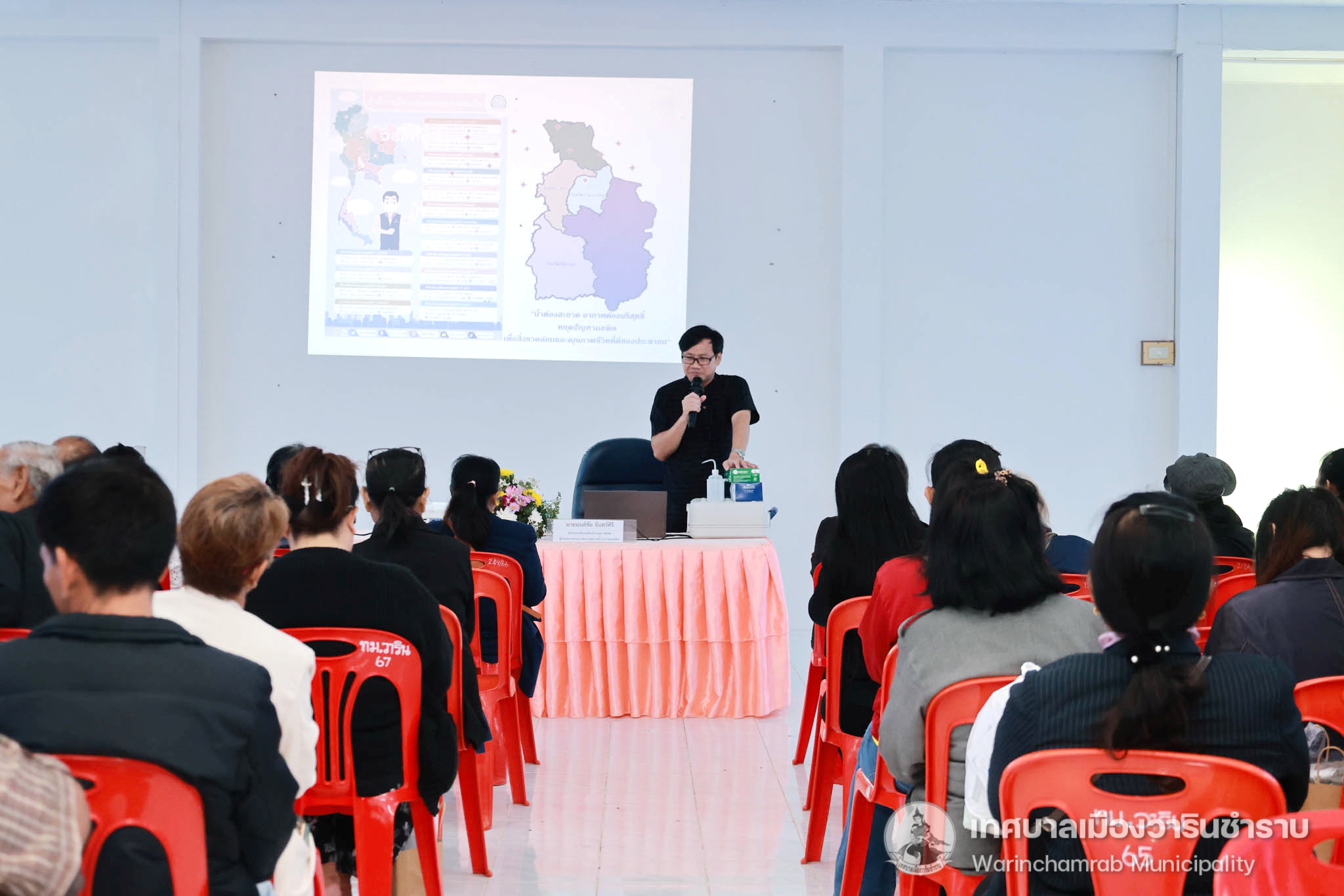 วันที่ 15 มกราคม 2569 เวลา 09.00 น. นายจีระชัย ไกรกังวาร นายกเทศมนตรีเมืองวารินชำราบ มาเป็นประธานในพิธีเปิดโครงการรณรงค์สร้างจิตสำนึกในการอนุรักษ์และฟื้นฟูแหล่งน้ำแก่ชุมชน ประจำปีงบประมาณ พ.ศ.2569 เพื่อให้ความรู้รณรงค์สร้างจิตสำนึกและความรู้ความเข้าใจให้แก่ประชาชนที่เข้ารับการอบรม และเกิดความร่วมมือในการดูแลอนุรักษ์แหล่งน้ำ เพื่อให้แหล่งน้ำสาธารณะภายในเขตเทศบาลเมืองวารินชำราบให้มีคุณภาพที่ดีขึ้น ซึ่งในอบรมครั้งนี้ได้รับเกียรติจากสมาชิกสภาเทศบาล และหัวหน้าส่วนการงาน ร่วมเป็นเกียรติในพิธีเปิดโครงการอบรบ และได้รับเกียรติจากนายมนต์ชัย จันทร์ศิริ นักวิชาการสิ่งแวดล้อมชำนาญการพิเศษ ผู้อำนวยการส่วนจัดการคุณภาพน้ำ อากาศและเสียง สำนักงานสิ่งแวดล้อม และควบคุมมลพิษที่ 12 อุบลราชธานี มาเป็นวิทยากรให้ความรู้ในครั้งนี้ ณ ห้องประชุมโครงการปรับปรุงคุณภาพน้ำ